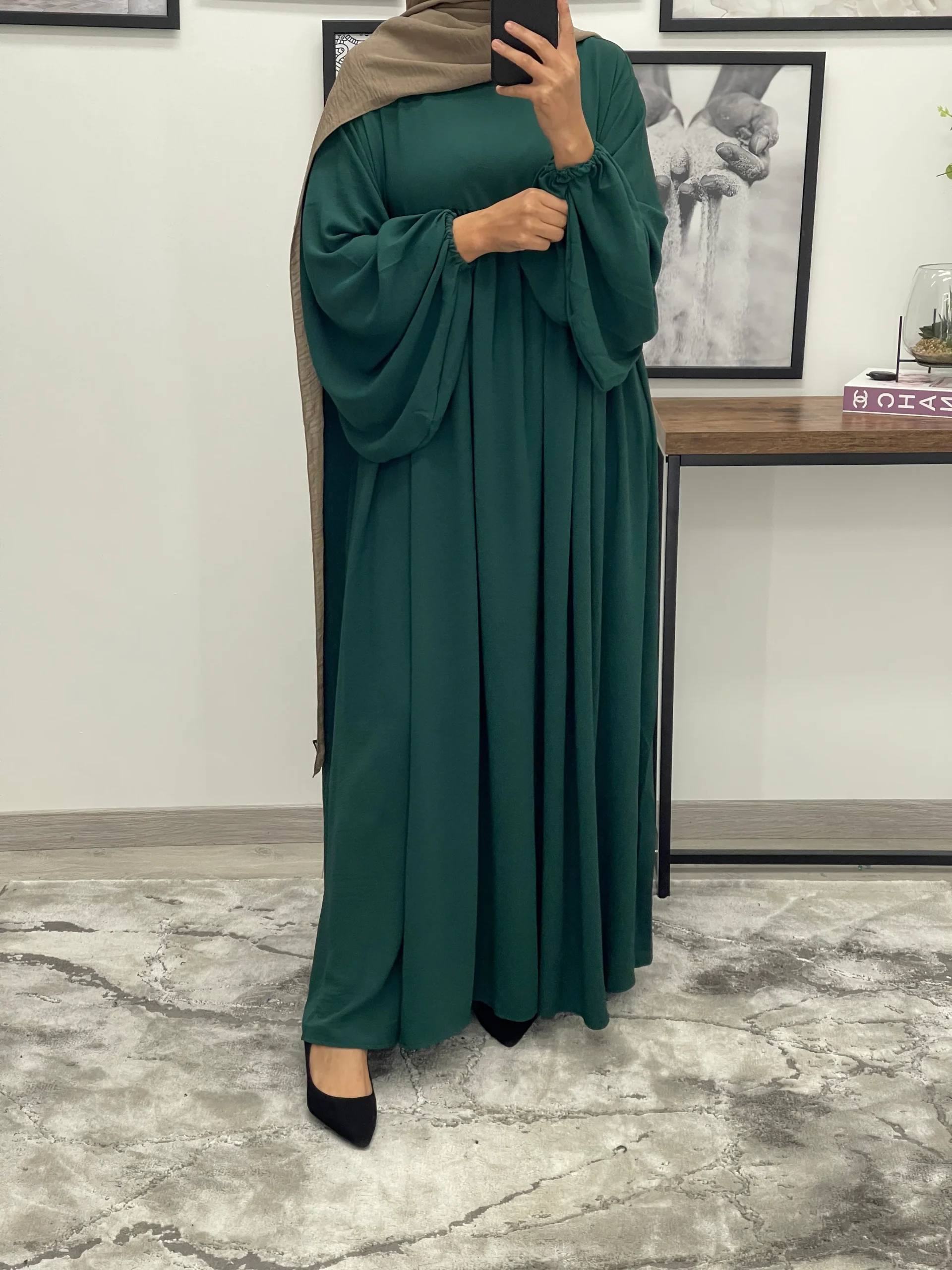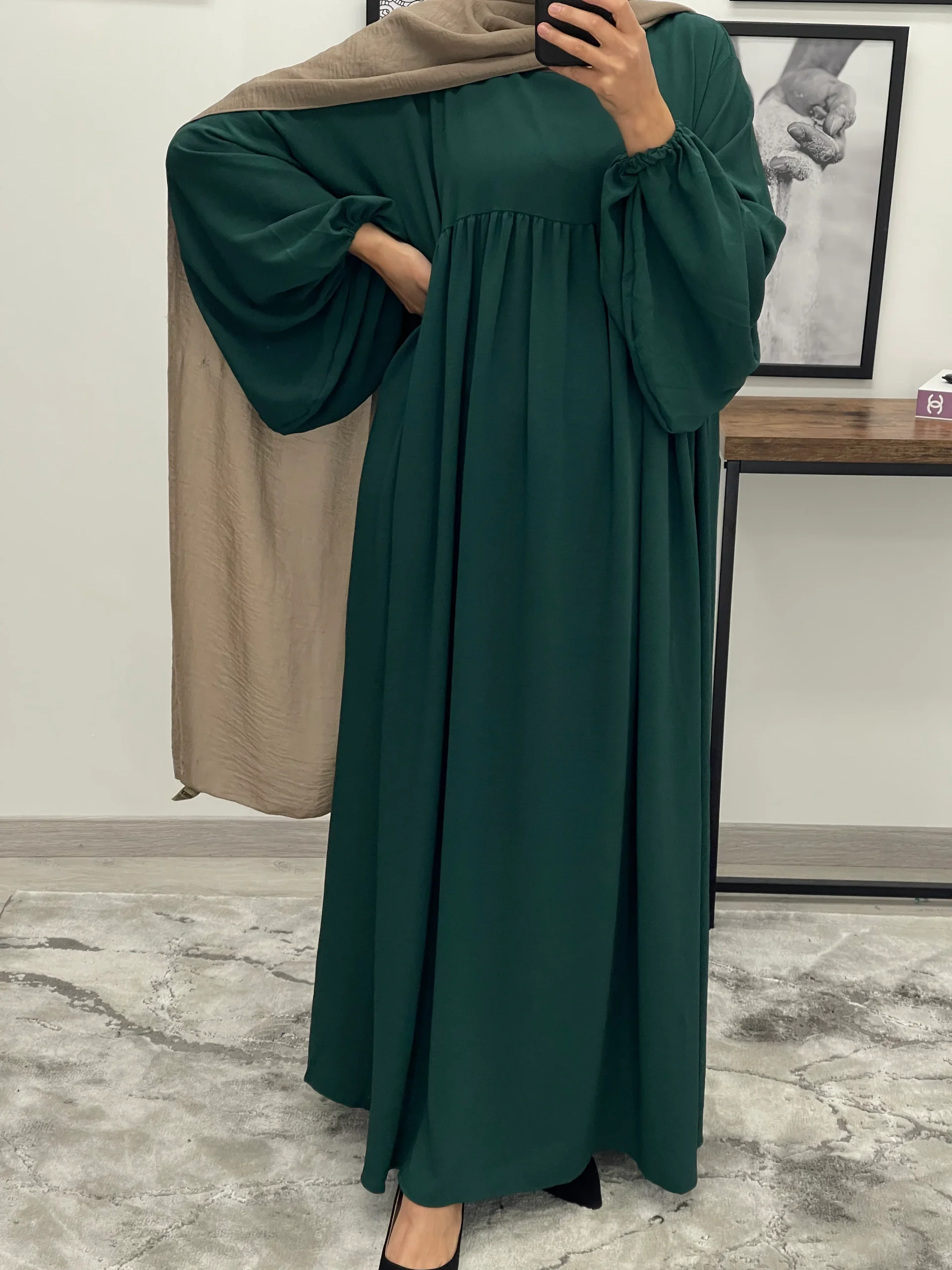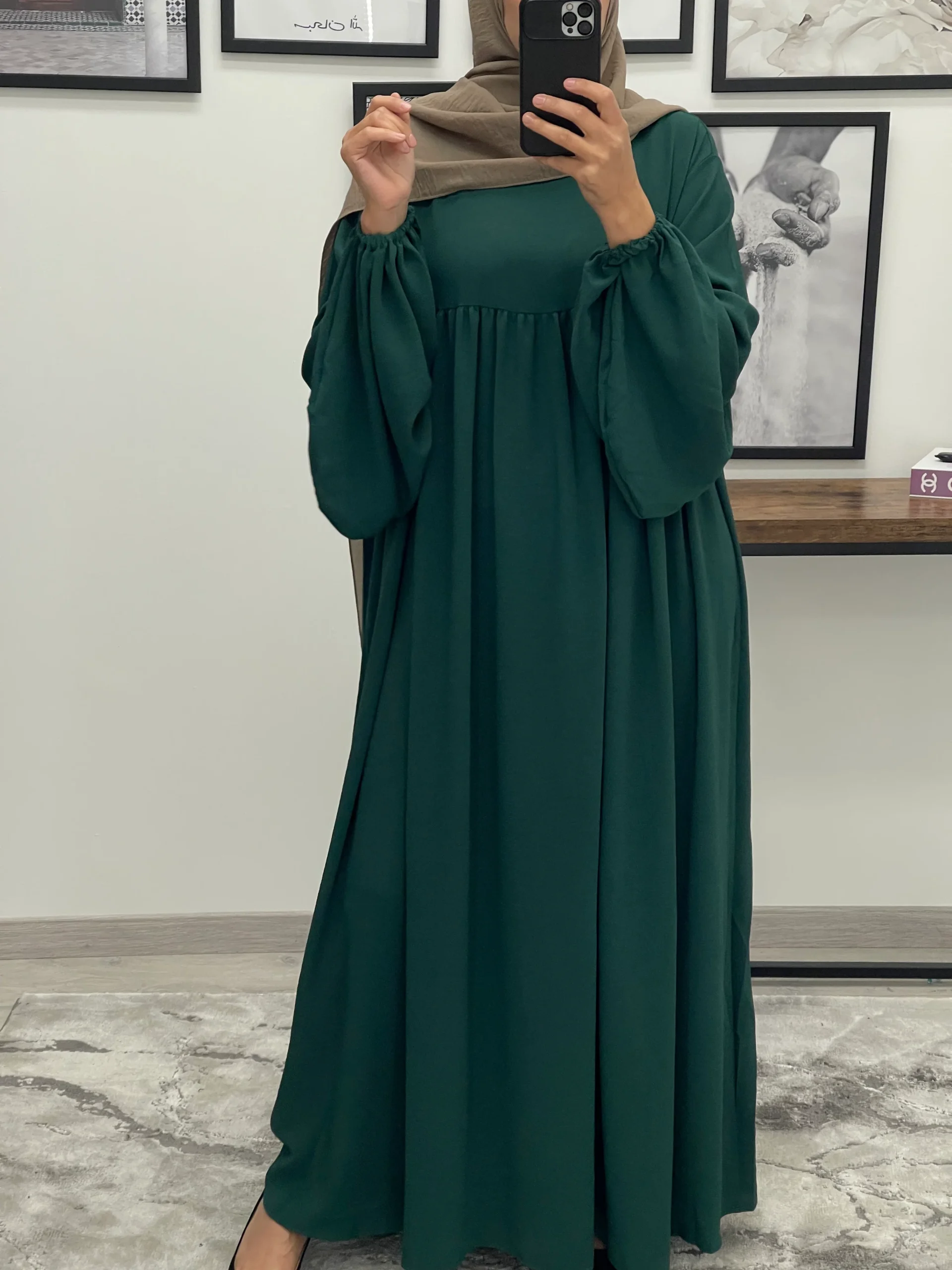 Maxi abaya taille unique Manche bouffantes Tissu Jazz Convient du 36 au 50 voir plus ( coupe très large) qualité +++ Existe en plusieurs couleurs La mannequin mesure 1M68