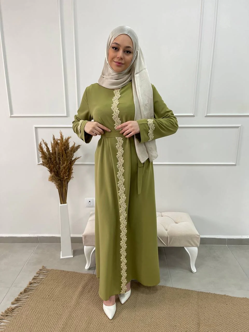 ABAYA AMINA VERT CANARD