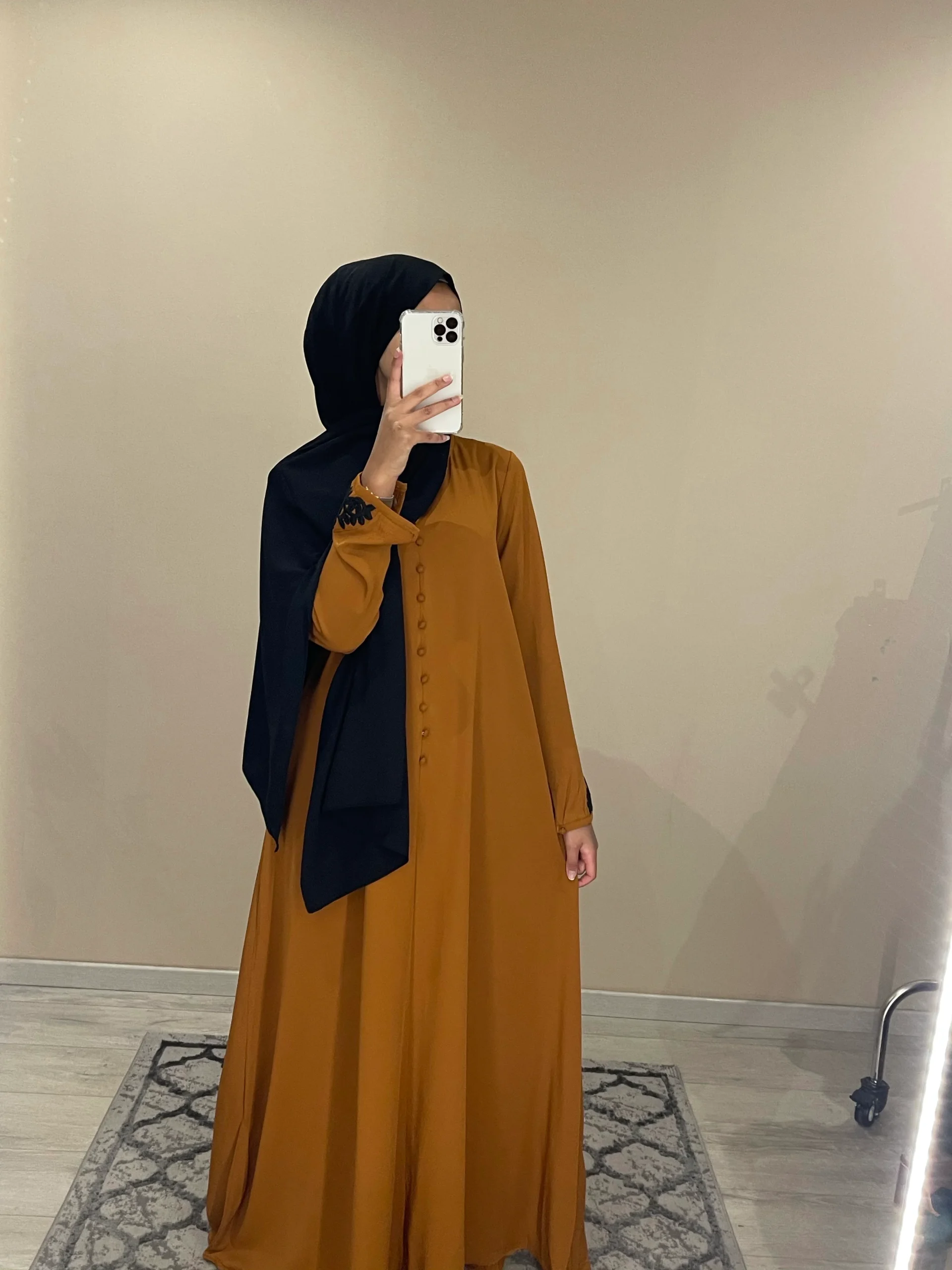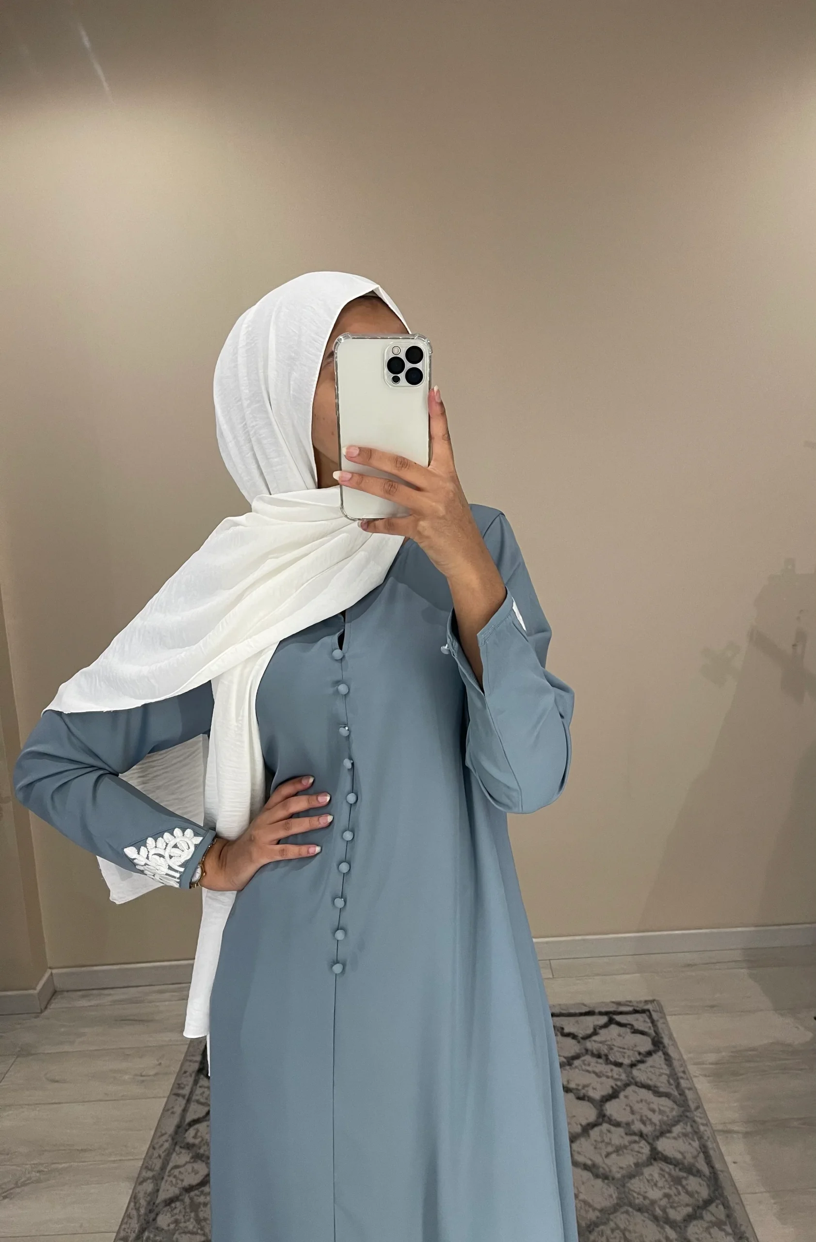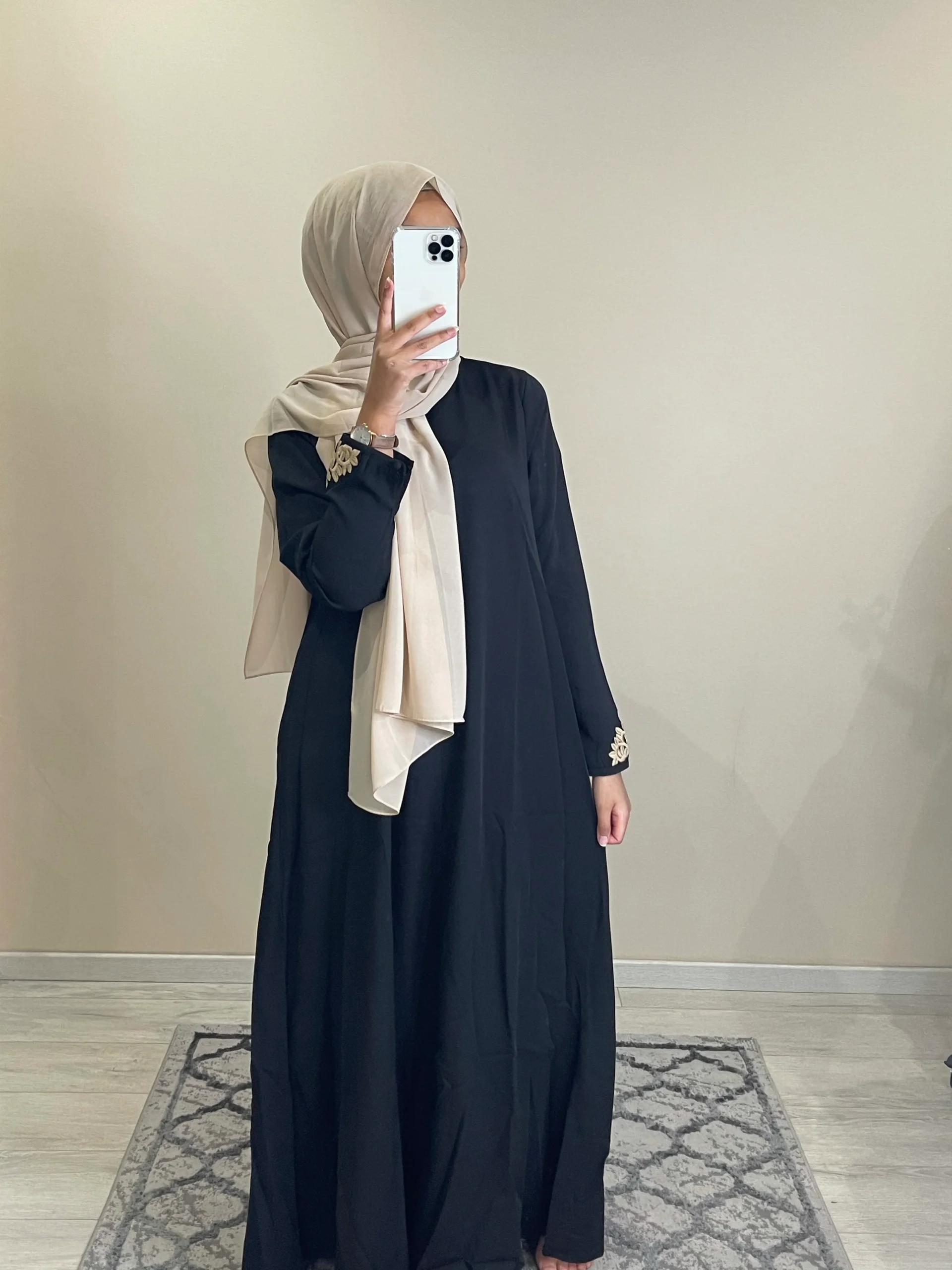 Robe évasée tissu opaque et fluide. Longueur 140cm. Broderie sur la manches Le modèle mesure 1m68 porte T1 T1 (36/38). T2 (40/42). T3 (42/44) Ref 1861