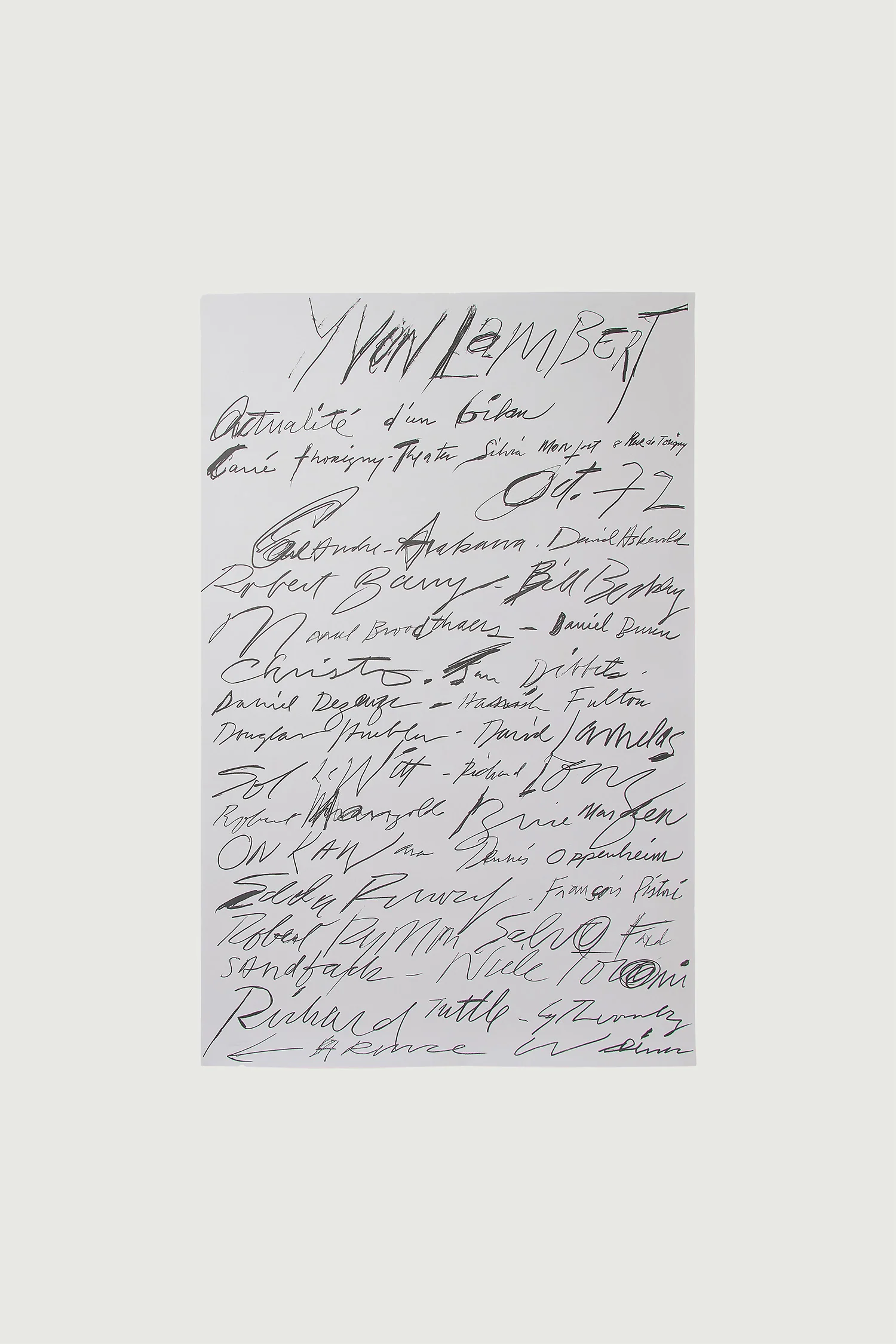 Affiche réalisée par Cy Twombly pour l’exposition « Actualité d’un bilan » à la galerie Yvon Lambert en 1972. Seconde impression en 2021, tamponné au verso.