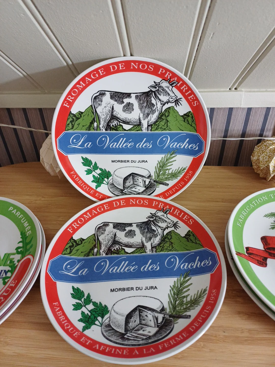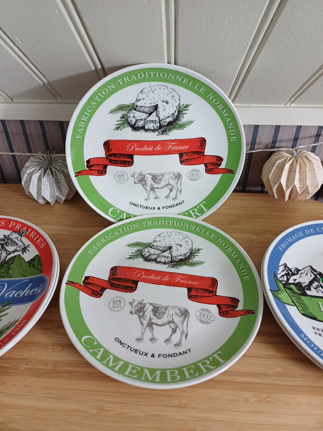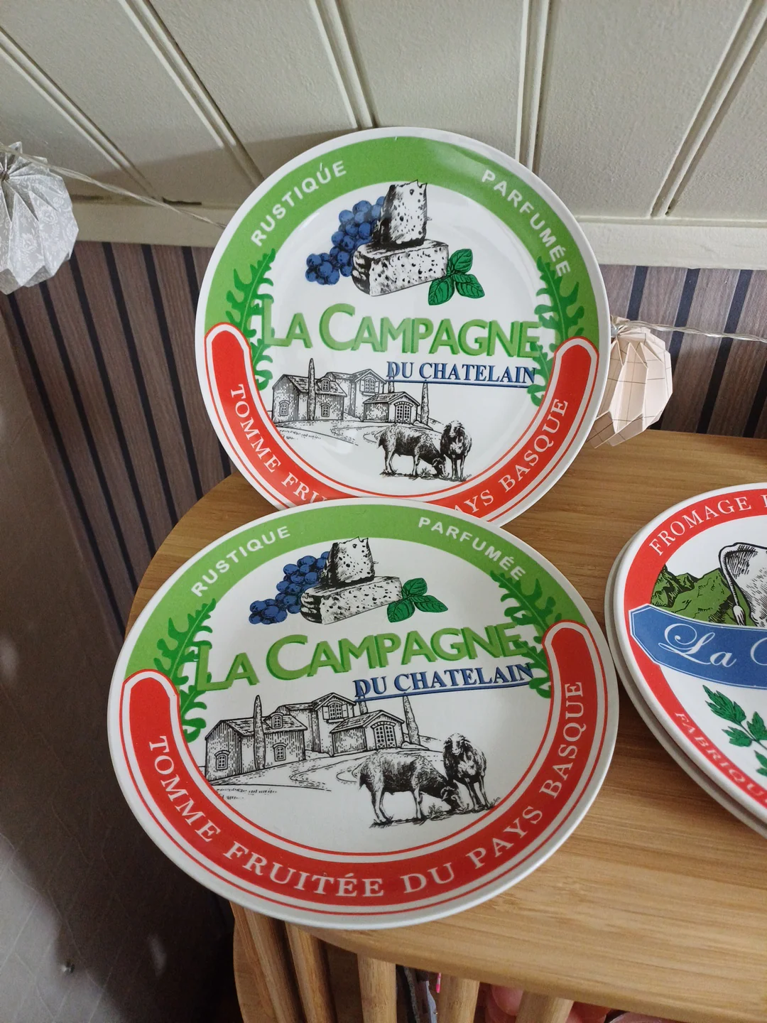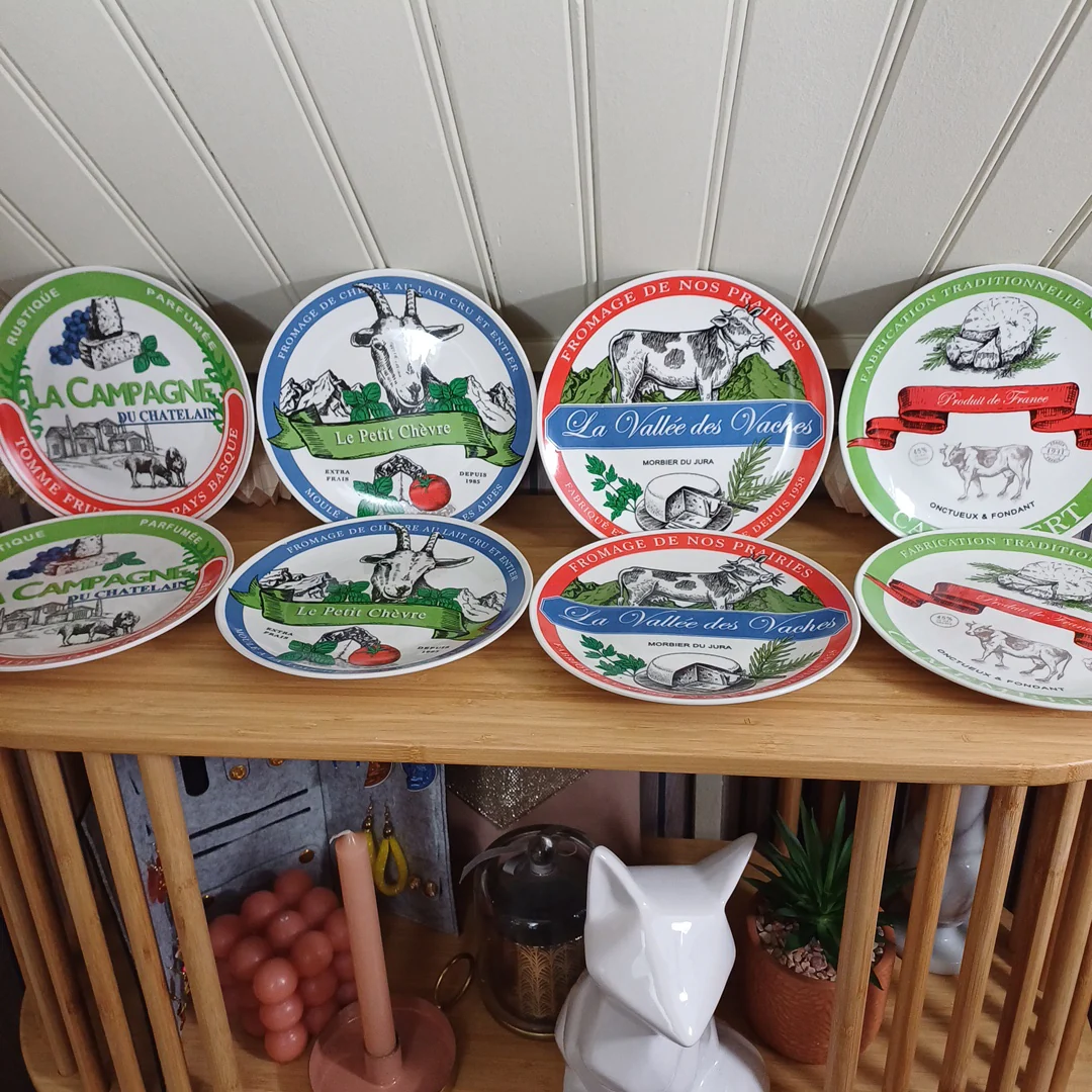 8 assiettes à fromage illustrées.