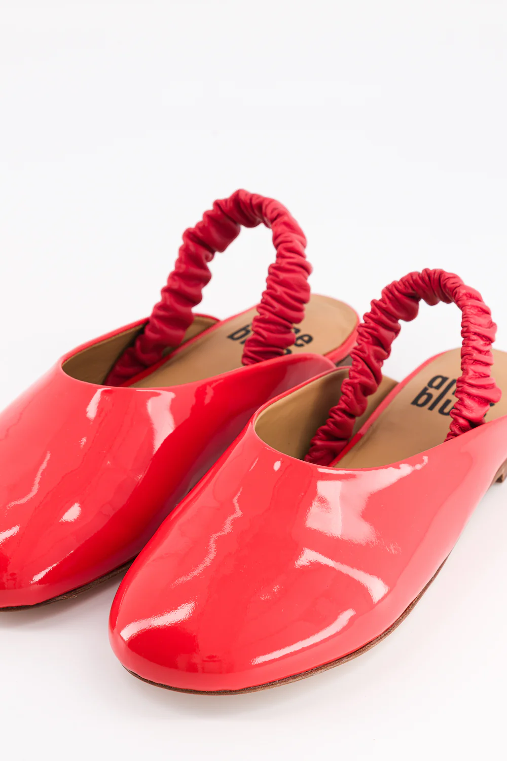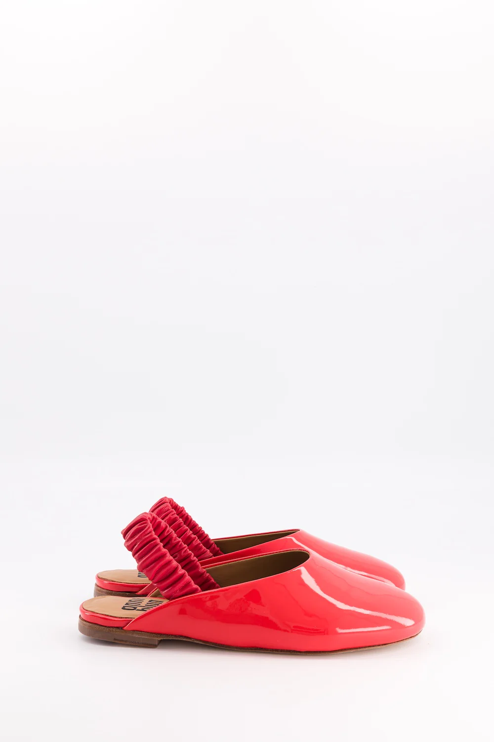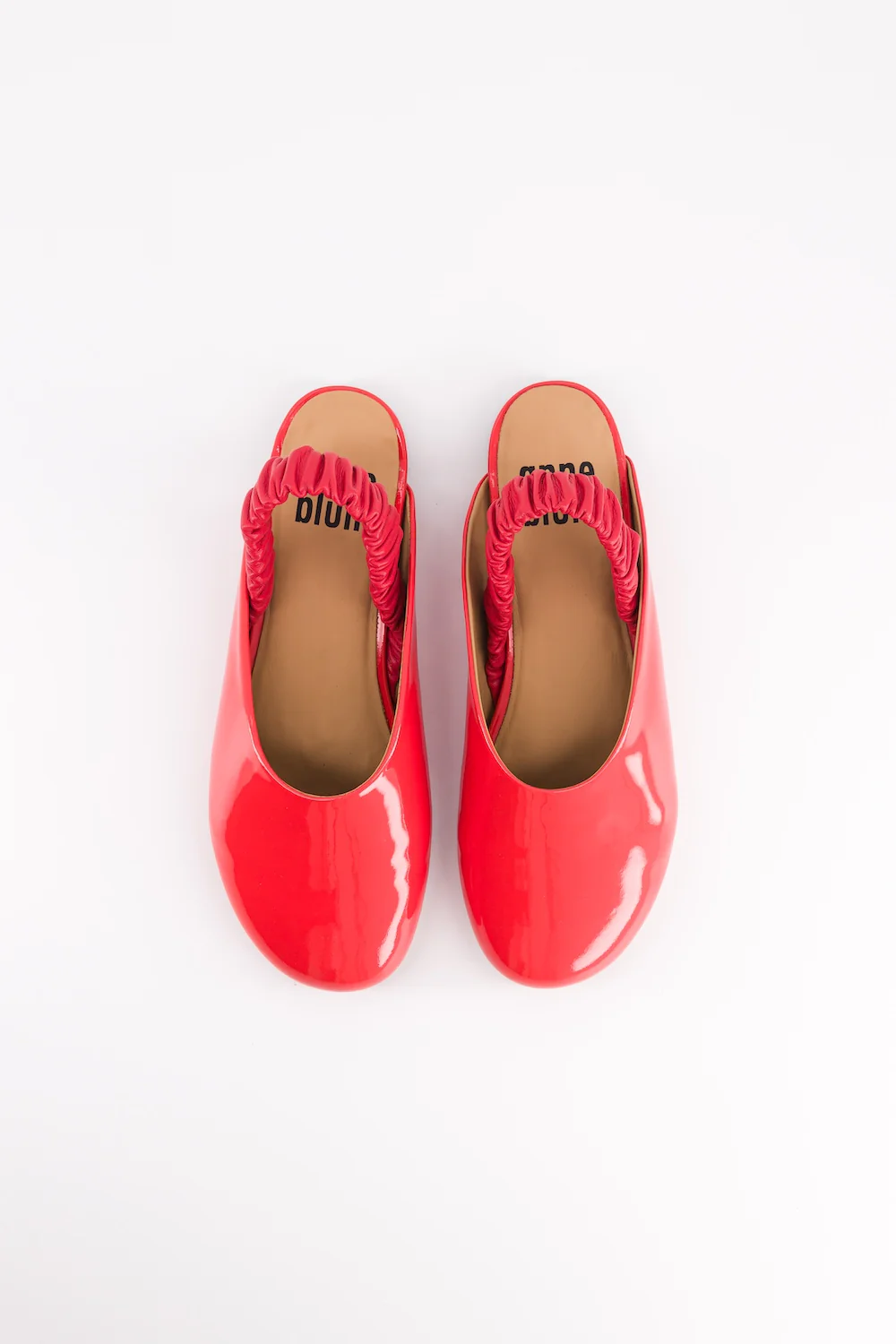 Nos ballerines slingback Bao mélangent le cuir vernis et le cuir souple.