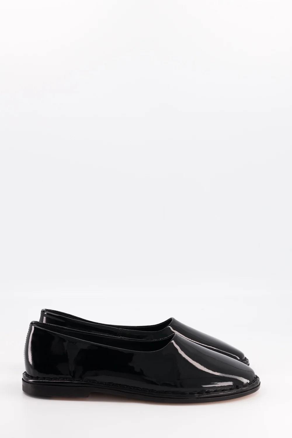 Ballerine forme ronde. Fabrication artisanale dérivée du cousu sandalette (San Crispino). La tige retournée borde la semelle. Première et semelle en cuir. Ces ballerines, au charme minimaliste, deviendront une de vos paires de chaussures indispensables aux beaux jours.