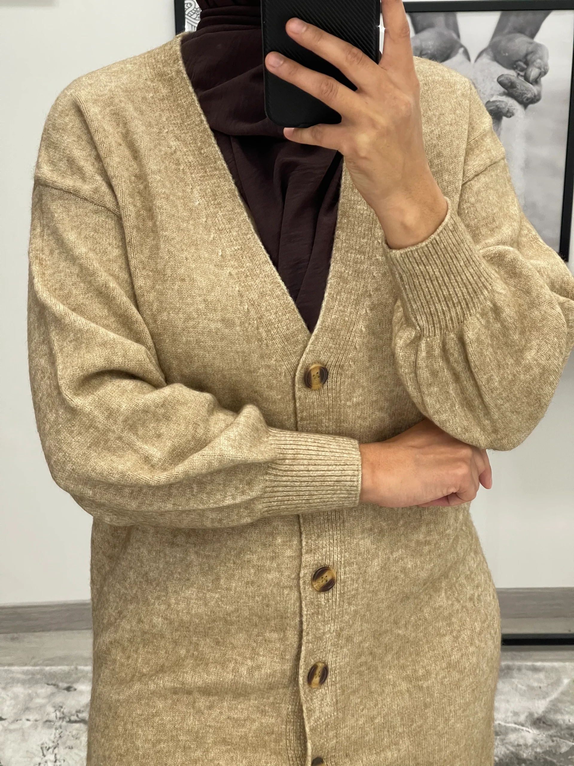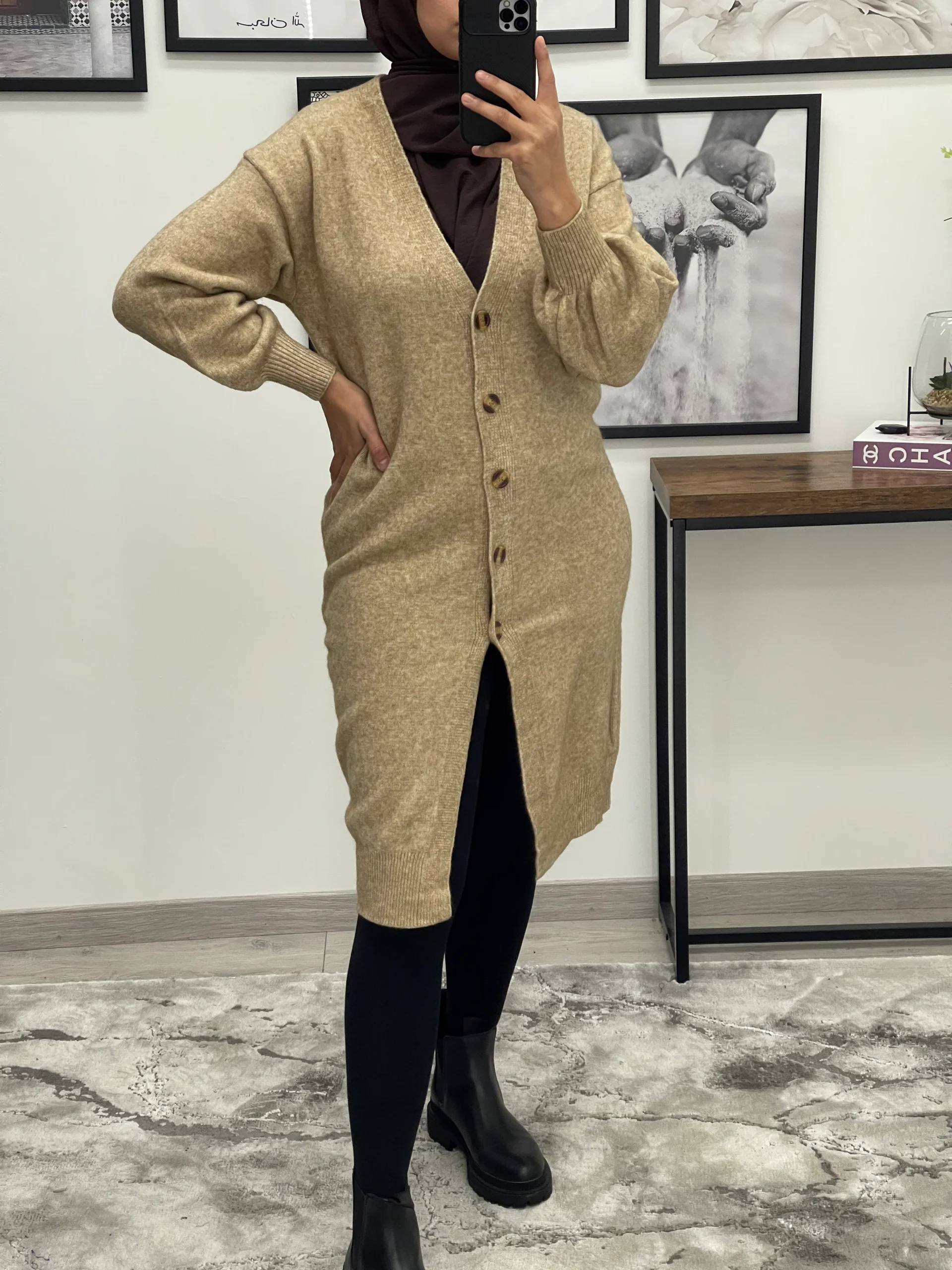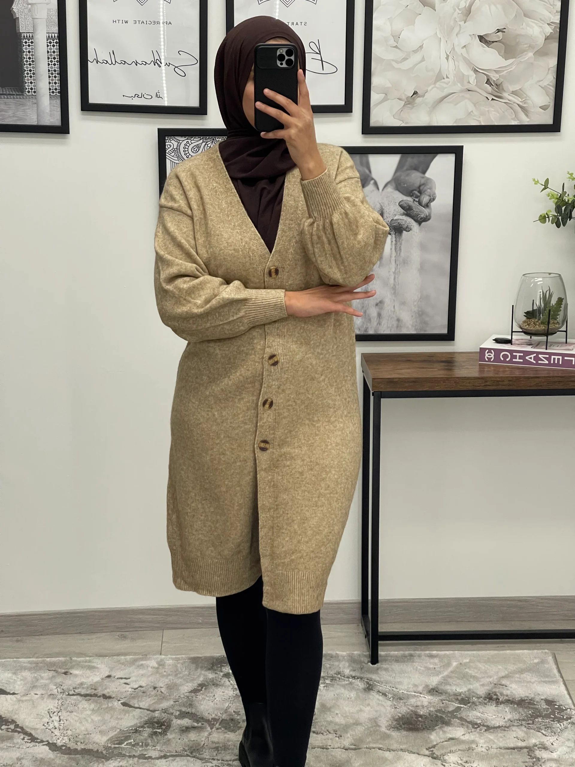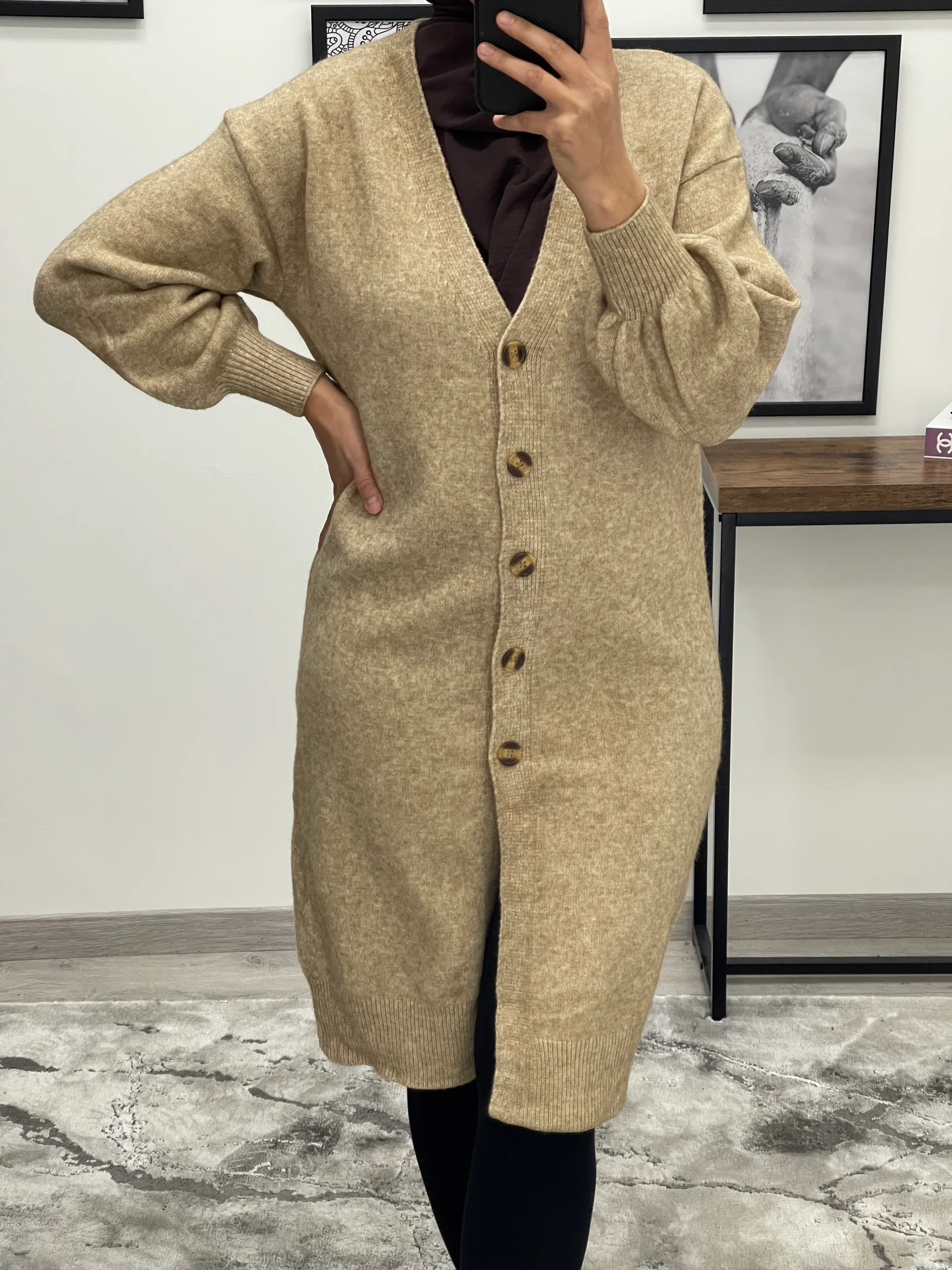 S/M : 36-38 M/L : 40-42 L/XL : 44 Longueur du gilet 125cm environ Le mannequin porte une s/m et mesure 1m68 Composition : 50% acrylic 22% polyester 28% polyamide REF: J82159
