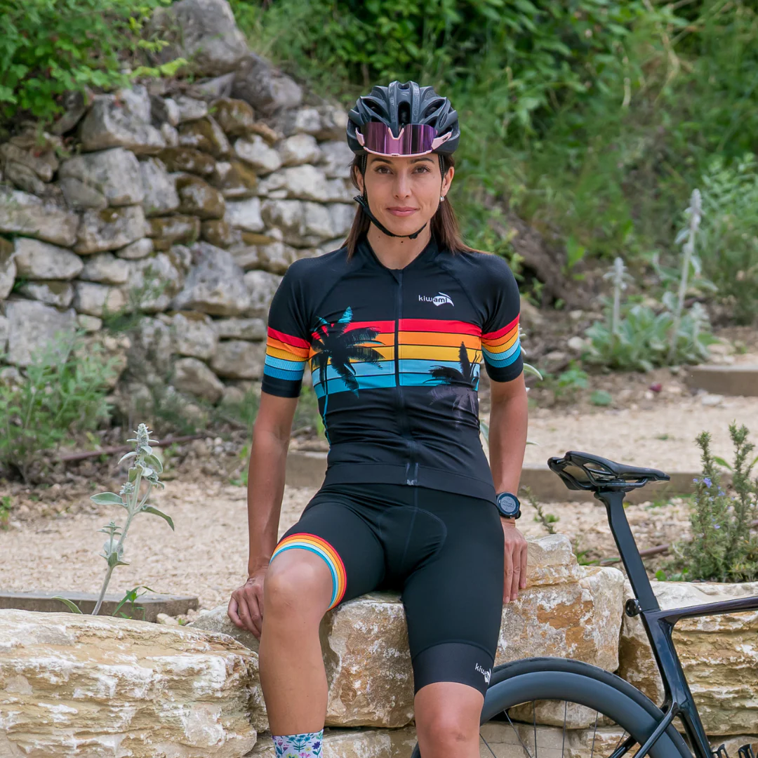 Cuissard avec bretelles conçu spécialement pour les cyclistes féminines, fabrication 100% française.