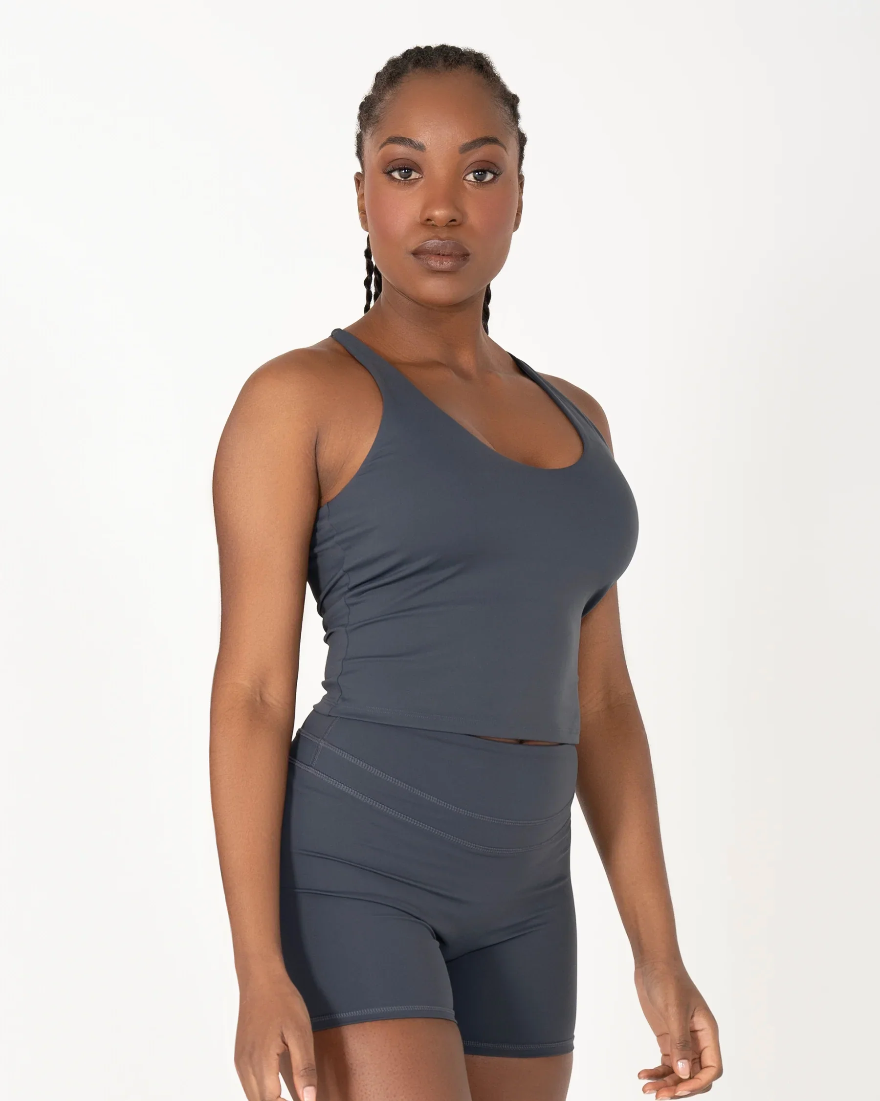 Profitez d’un confort absolu avec le débardeur à brassière intégrée Amy bleu nuit, conçu pour allier maintien et légèreté. Sa matière douce effet seconde peau et ses bretelles croisées assurent un ajustement parfait, idéal pour le yoga, le fitness ou une journée active.