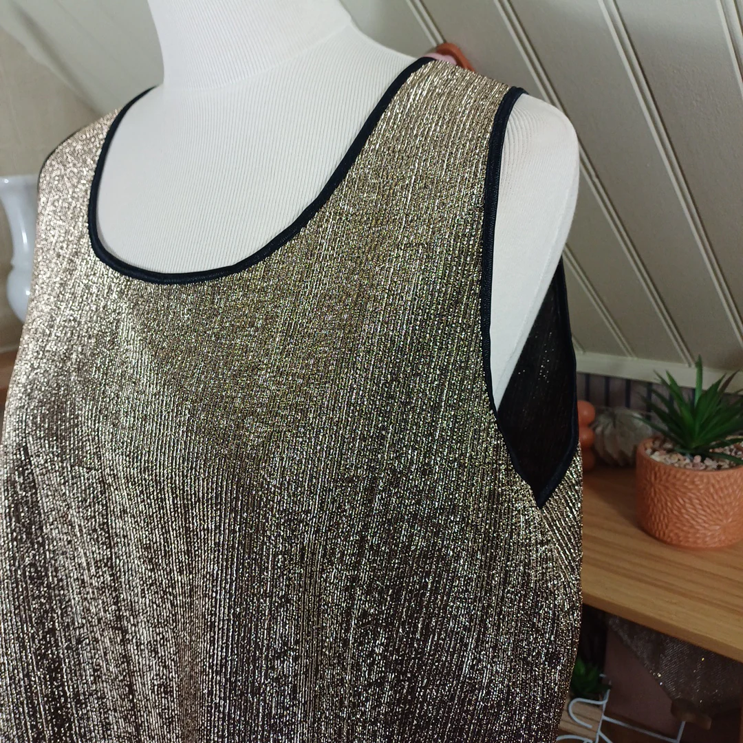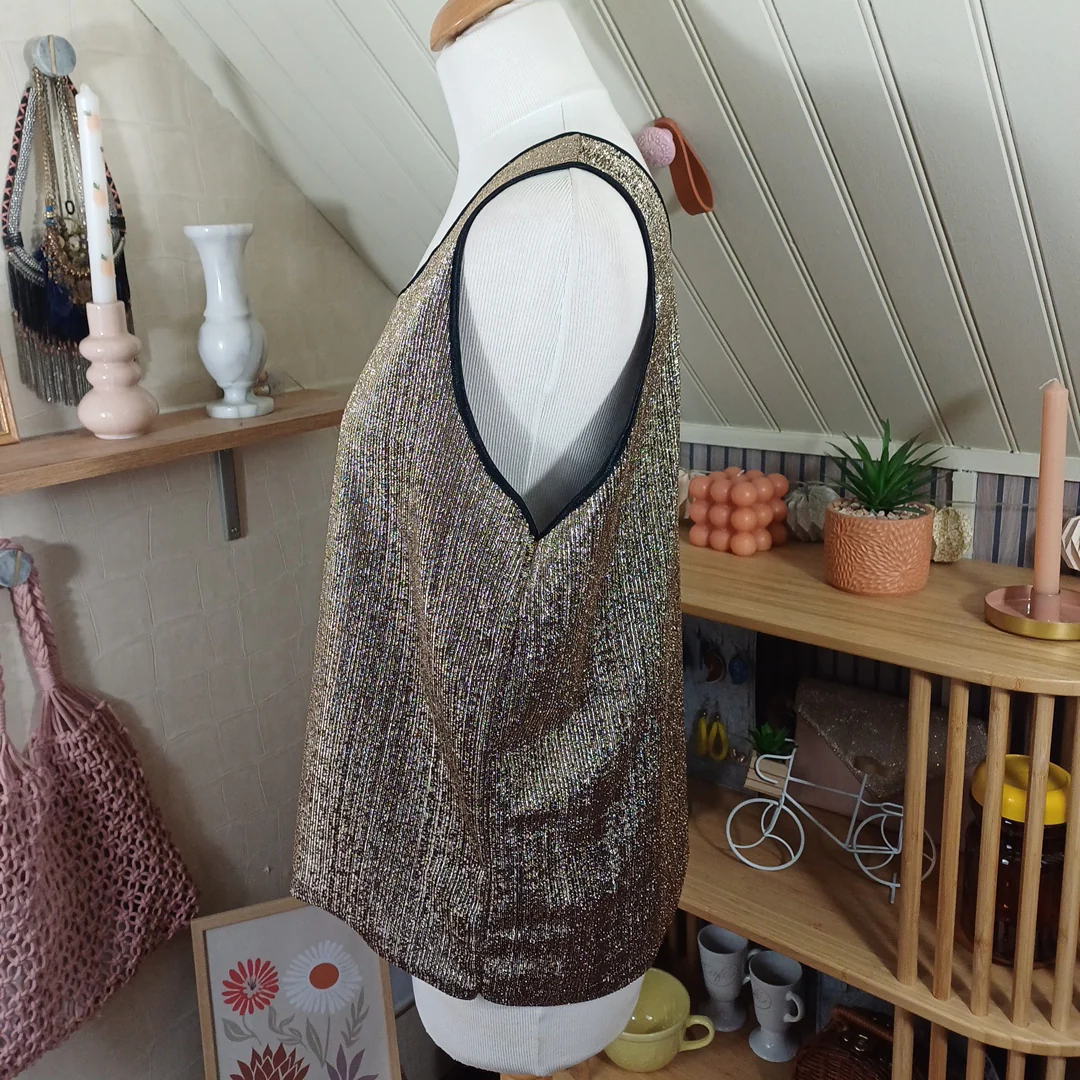 Débardeur doré, marque non indiquée, taille indiquée 46.