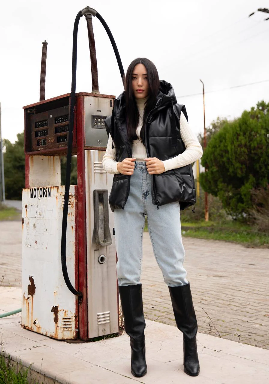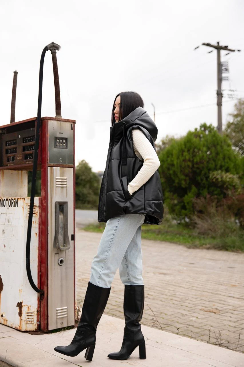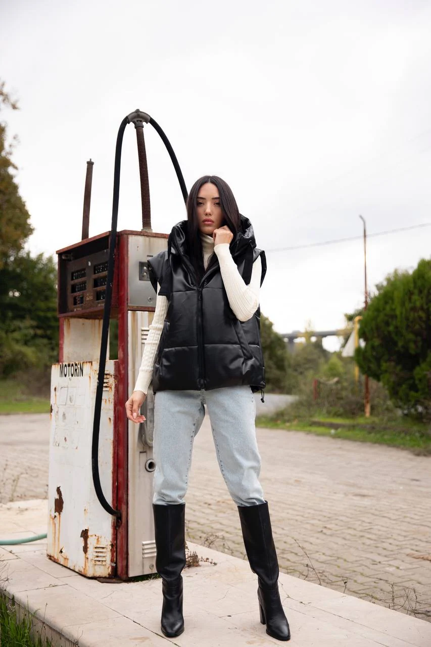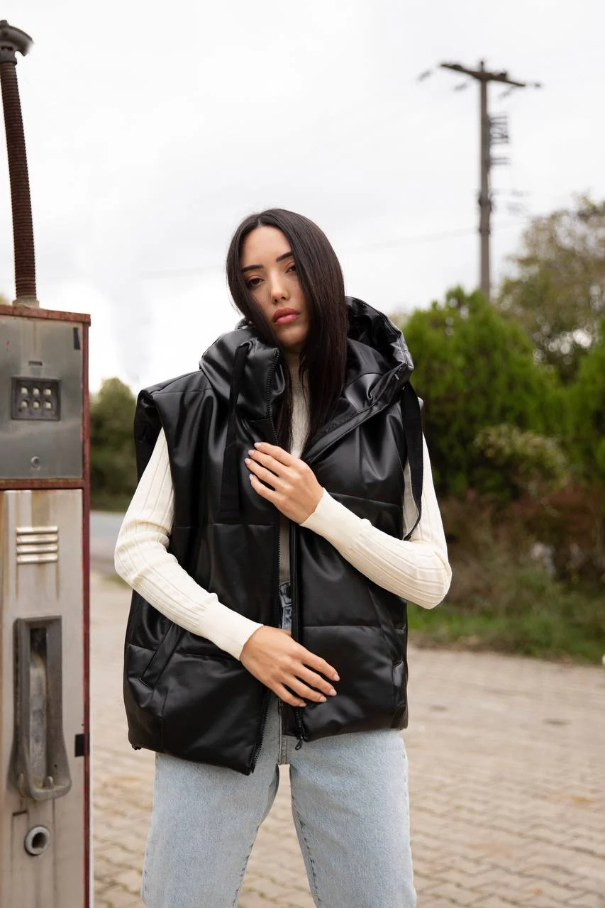 DOUDOUNE SIMILI SANS MANCHES NOIR