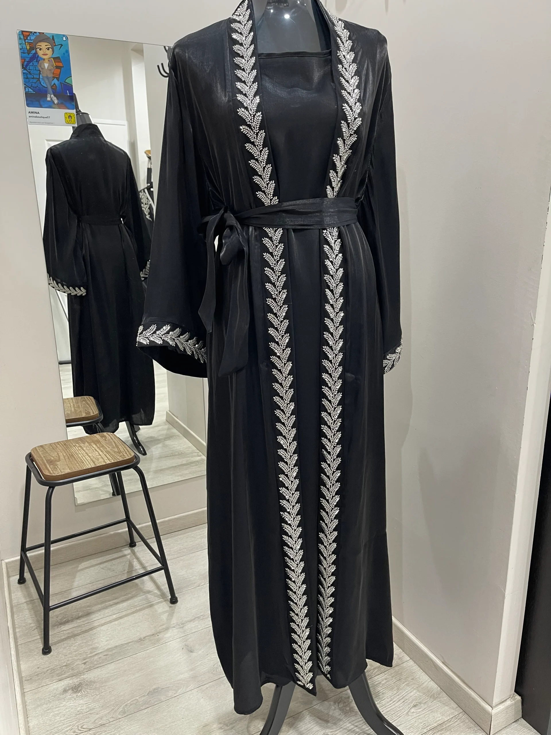 ENSEMBLE 2 PIECES ABAYA ET GILET NOIR