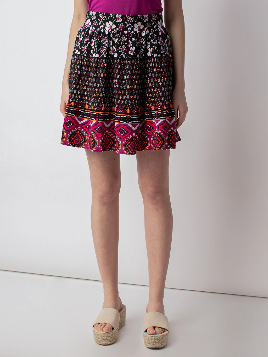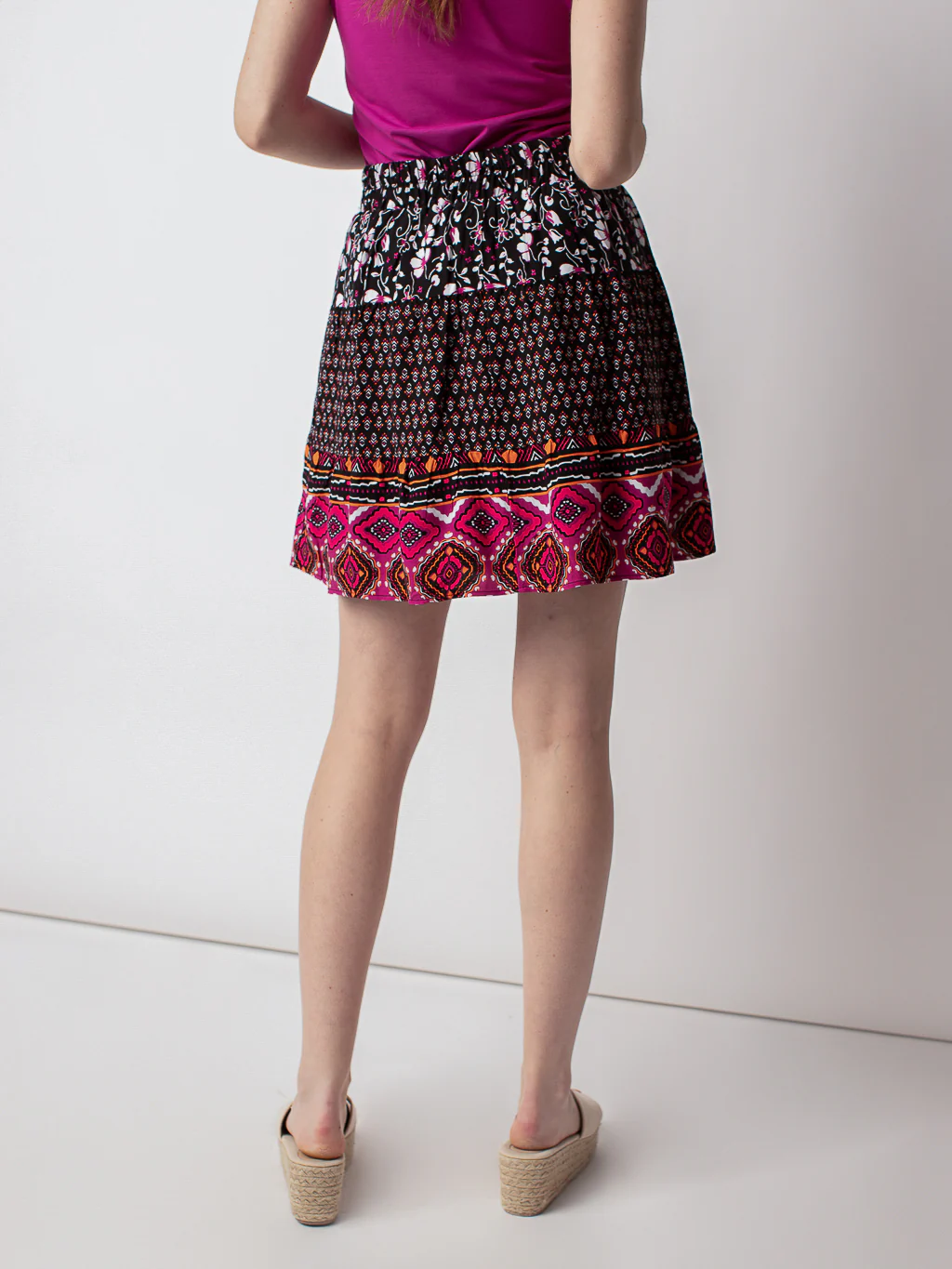 Avec son imprimé coloré, cette jupe légère est idéale pour les brunchs entre amis et les soirées dansantes.