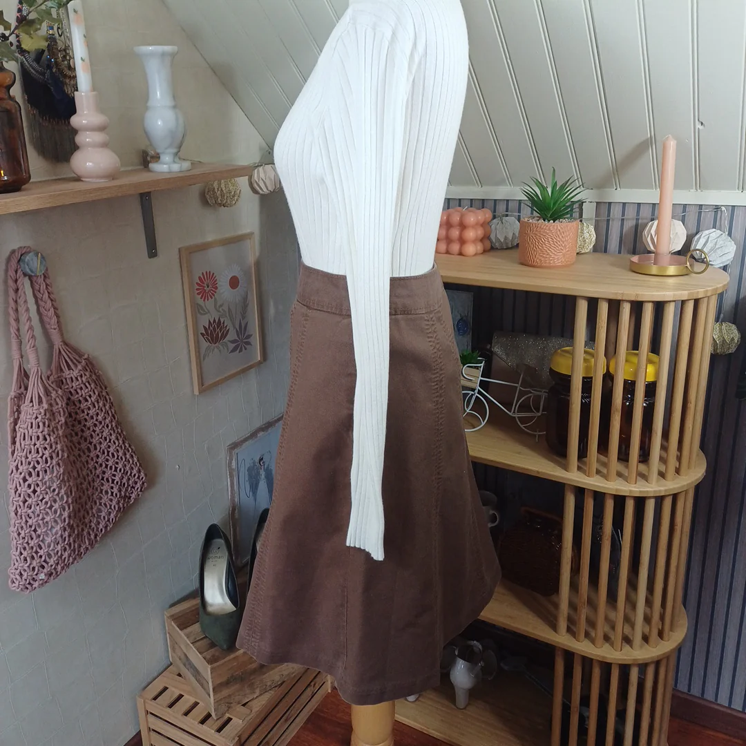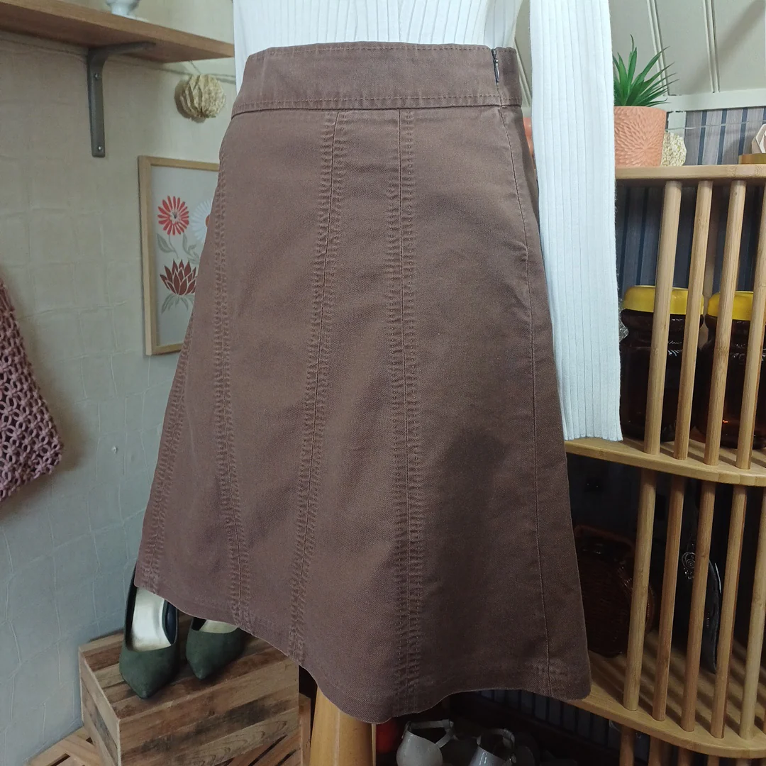 Jupe en jean marron, Gap, taille indiquée 46. Fermeture éclair sur le côté. Mesures: Tour de taille 84 cm Longueur 56 cm