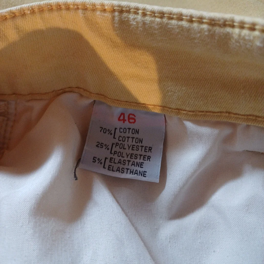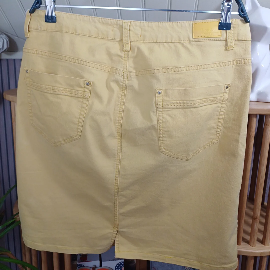 Jupe en jean jaune, Voggo denim, taille indiquée 46. Mesures: Tour de taille 84 cm Longueur 52 cm