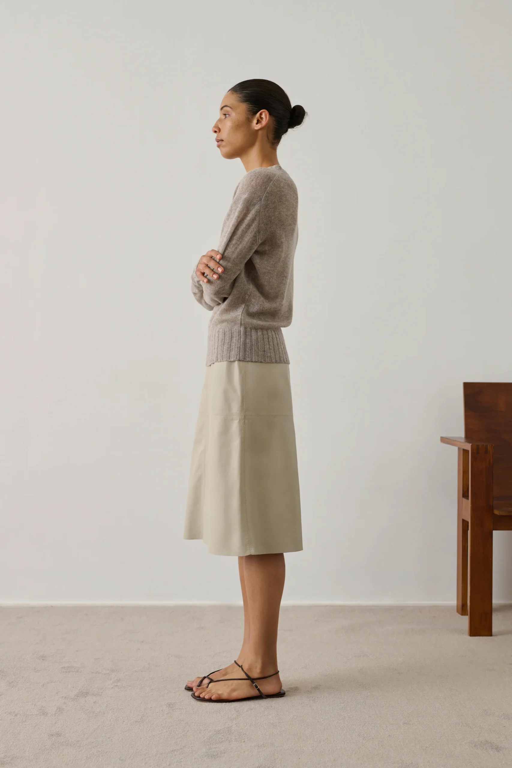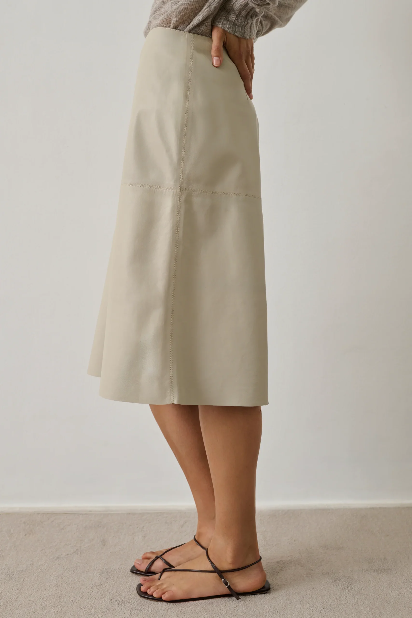 – Coupe droite – Longueur en dessous des genoux – Zip au dos et crochet invisible – Détails de surpiqûres – Cuir LWG (Leather Working Group)