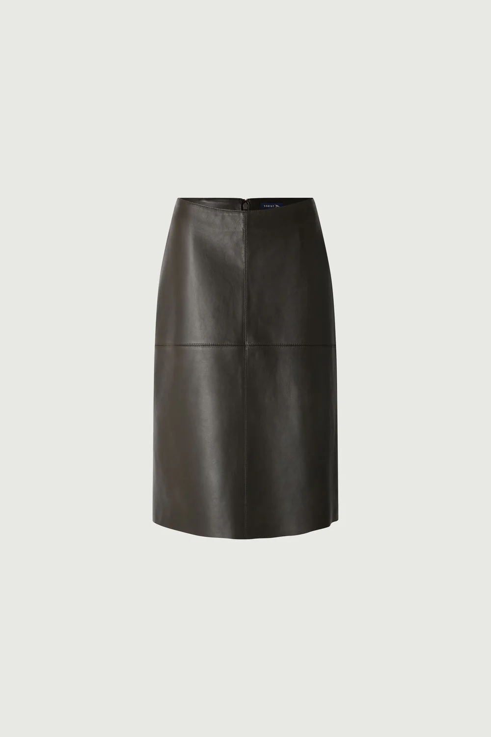 GWEN est une jupe en cuir à la coupe droite légèrement évasée, longueur genoux. Elle se ferme par un zip au dos et un crochet invisible. Les détails de surpiqûres ajoutent du caractère. En coton-cuir lisse, elle est souple et confortable pour un port agréable.