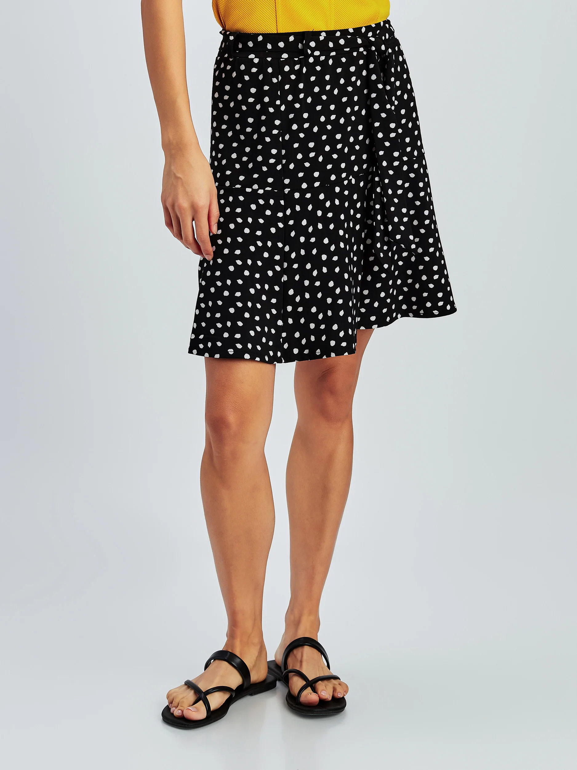 Cette jupe midi est orné d’un petit motif subtil blanc sur noir, l’ourlet évasé allie féminité et confort.