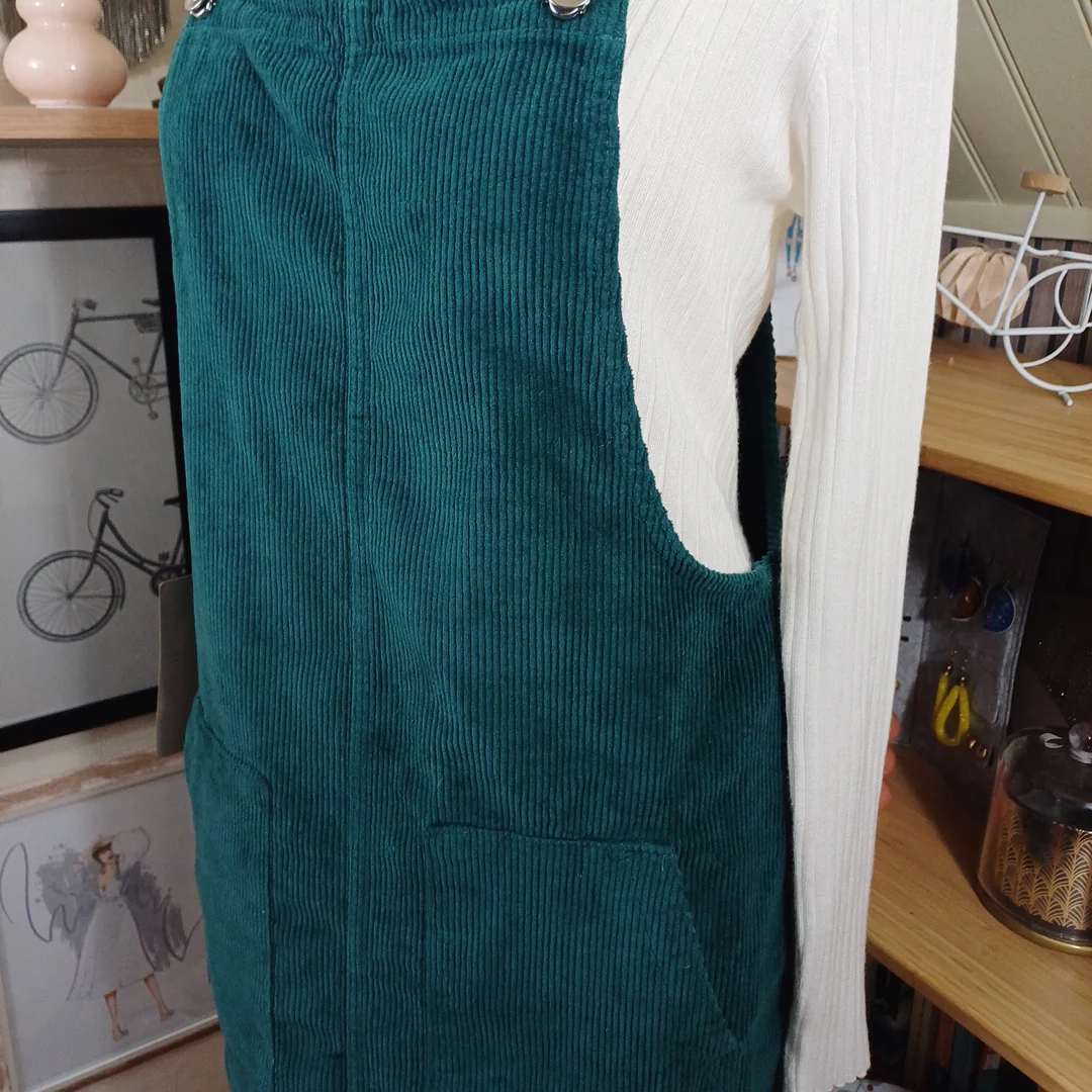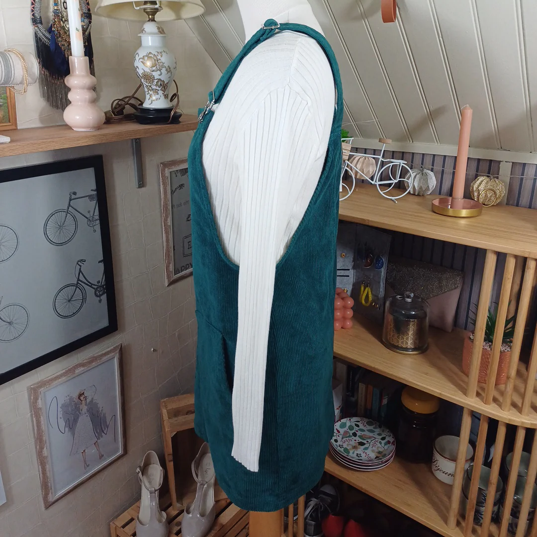 Jupe salopette verte en velour côtelé, Esmara, taille indiquée 42.