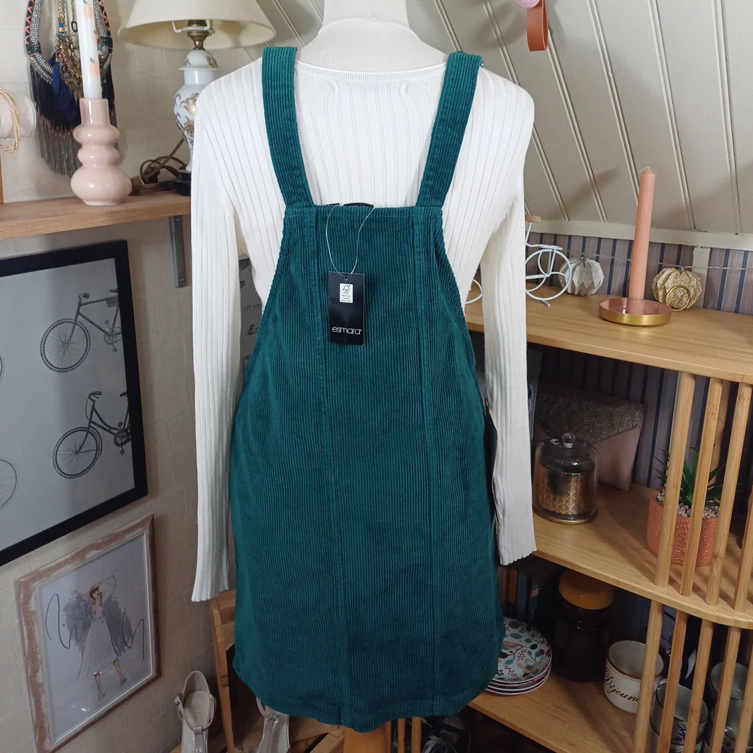 Jupe salopette verte en velour côtelé, Esmara, taille indiquée 42. Neuve avec étiquette. Bretelles réglables.