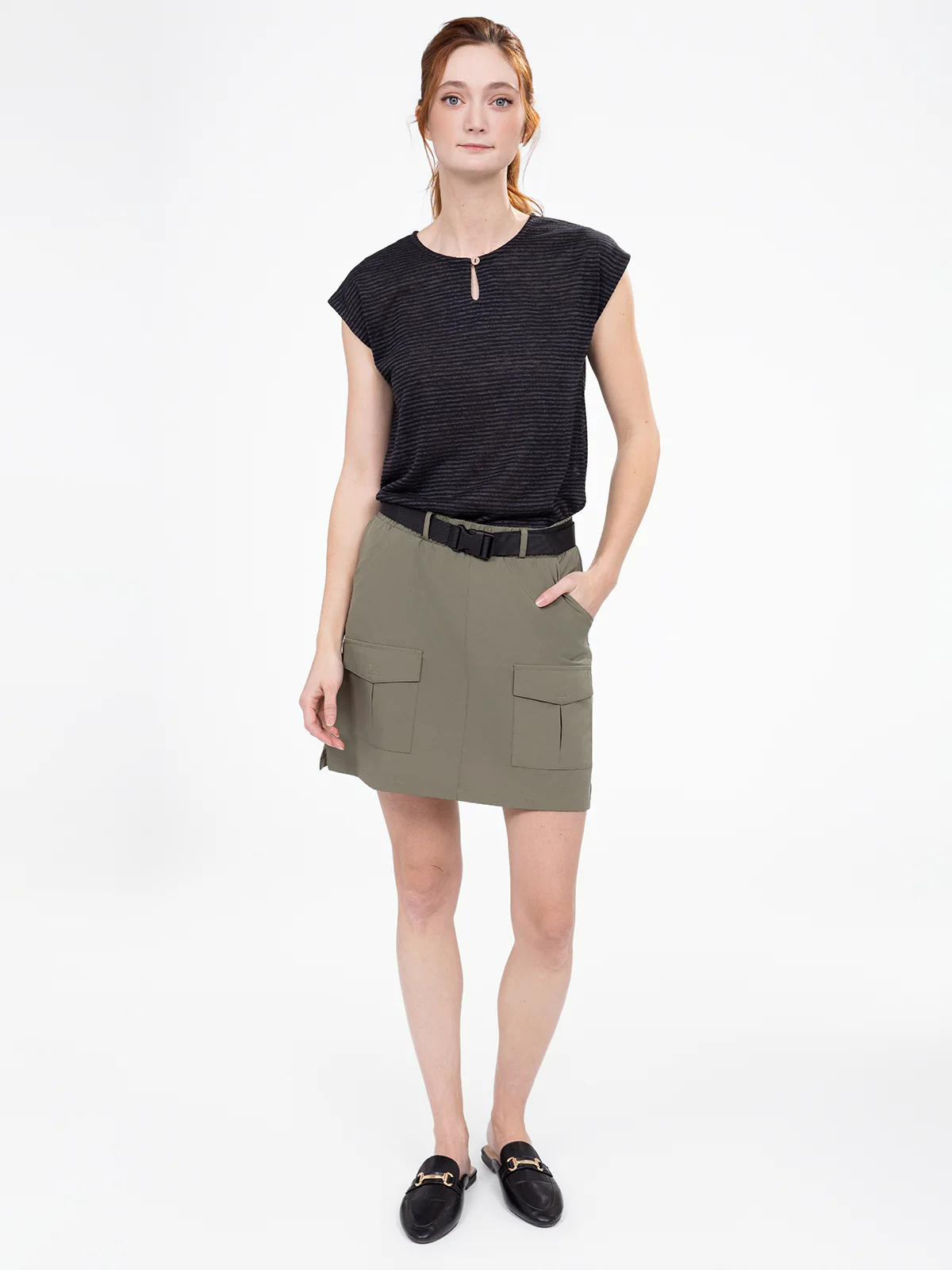 Cette jupe cargo est idéale pour une allure sportive sans compromis sur le style. Son tissu résistant et sa coupe fluide la rendent parfaite pour toutes vos sorties.