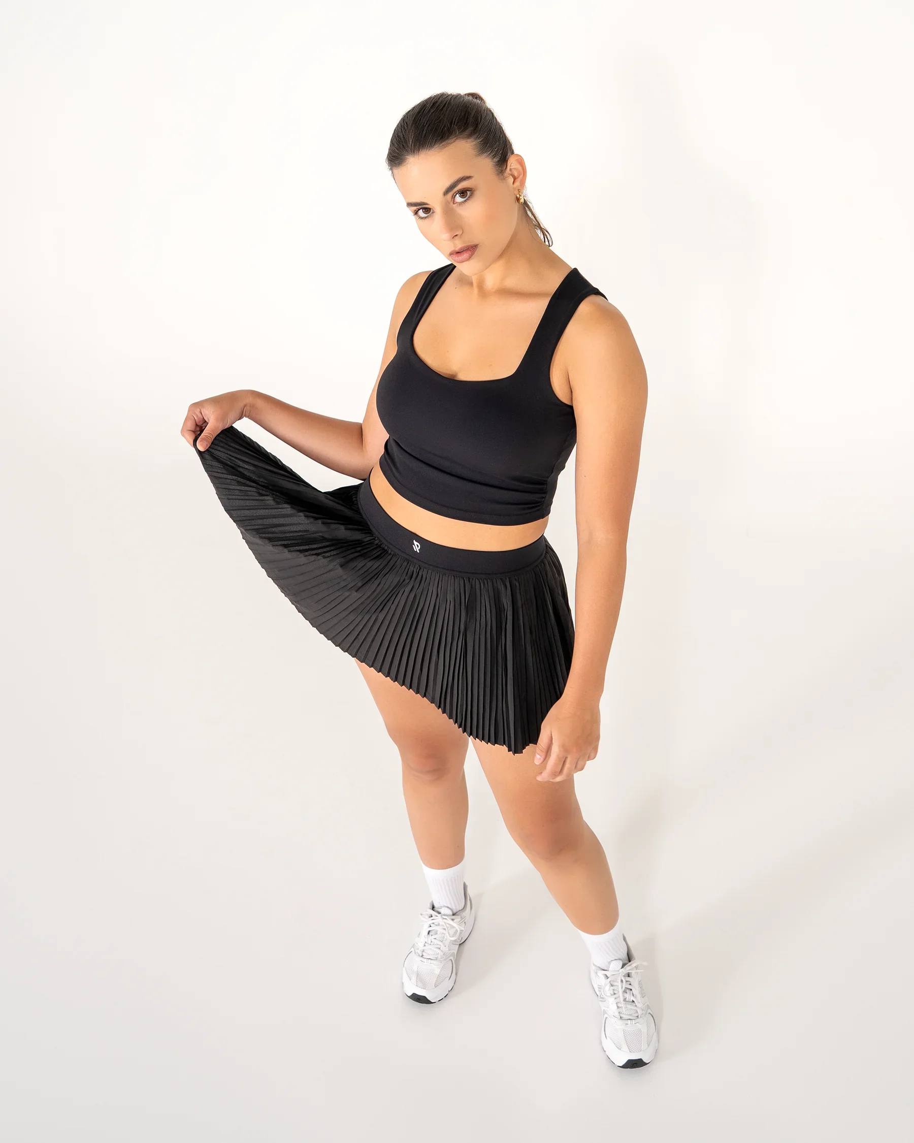 Avec son plissé élégant et son short intégré, la jupe-short ARIA noire puise son inspiration dans l’univers du tennis. Légère et confortable, elle vous accompagne avec style sur le court, à la salle ou en ville.