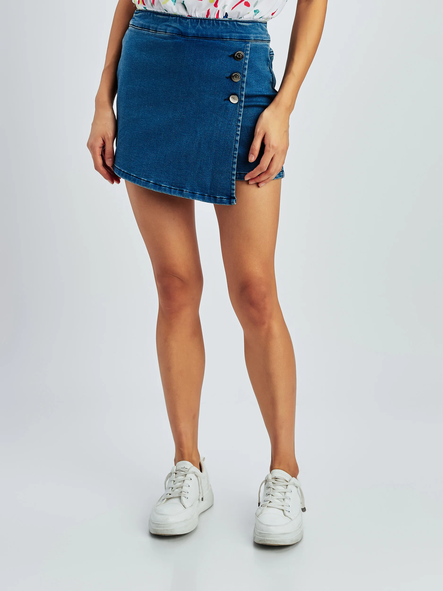 Jupe-short en denim parfaitement dans la tendance. Enfilez-la avec votre t-shirt préféré et des baskets.
