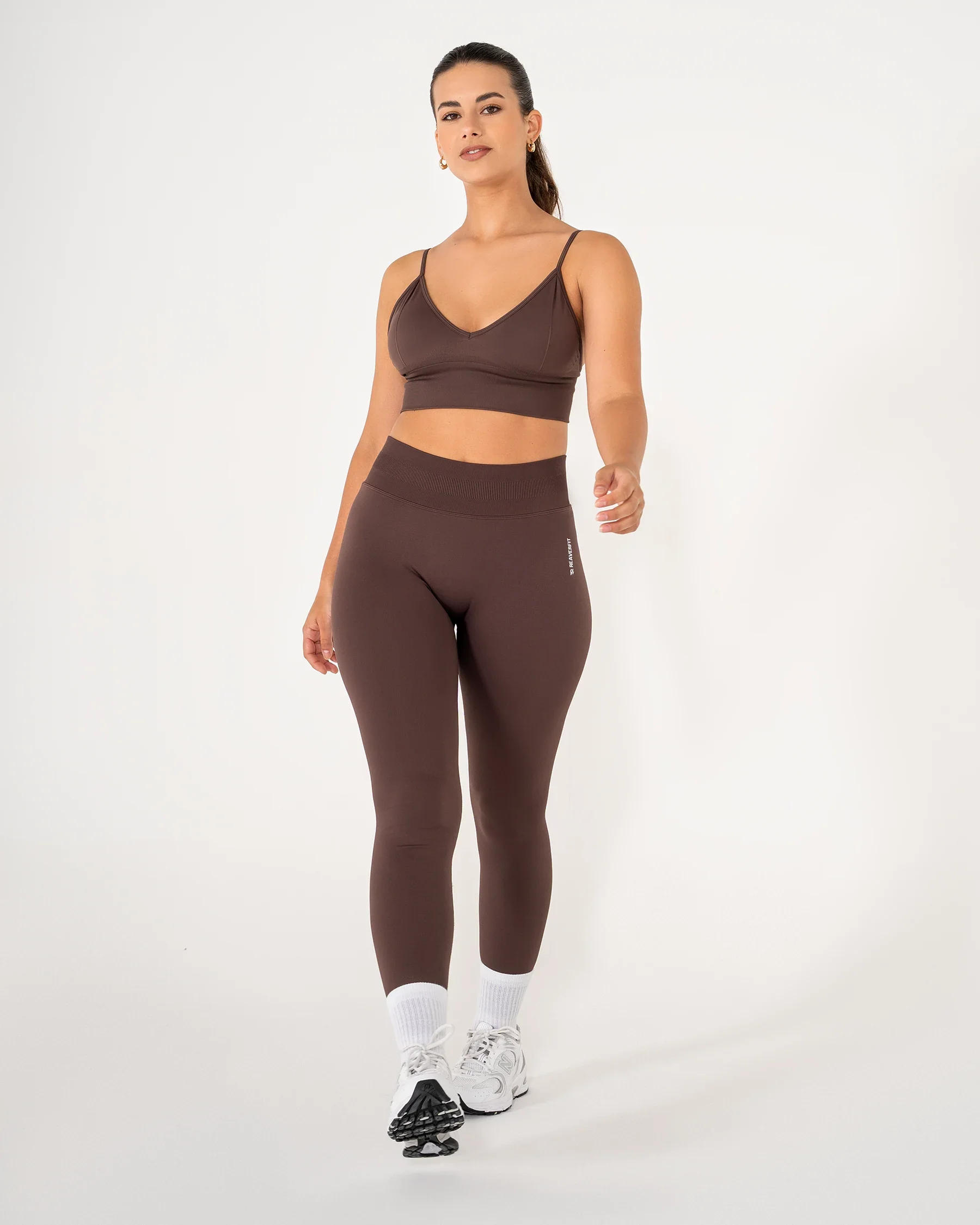 Sublimez votre silhouette avec le legging CORE Marron, conçu pour offrir confort et maintien optimal. Sa taille haute gainante assure un soutien parfait, tandis que sa matière opaque vous permet de bouger en toute confiance. Parfait pour le fitness, le Pilates et les entraînements intensifs.