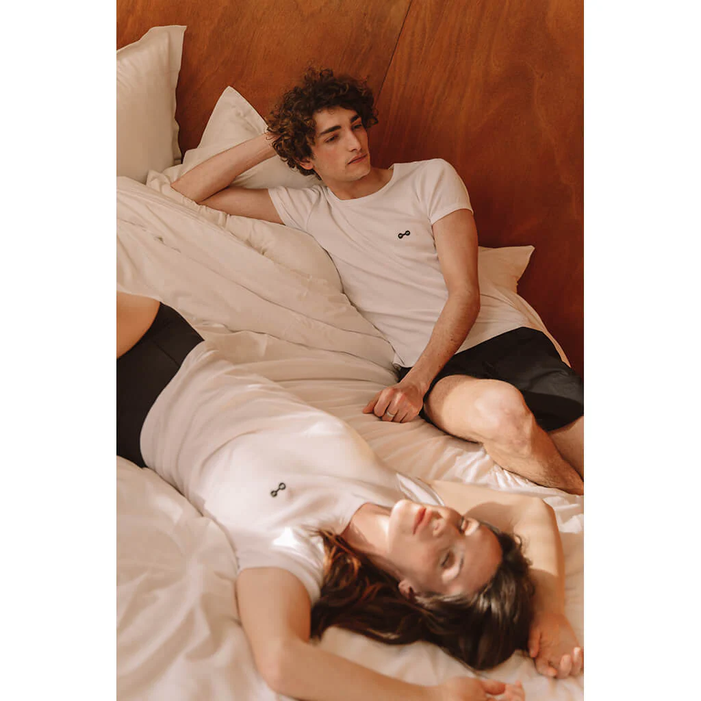 100% Coton Pima (190g/m²), une fibre rare et non traitée, reconnue pour sa douceur, sa robustesse et son confort exceptionnel au quotidien.