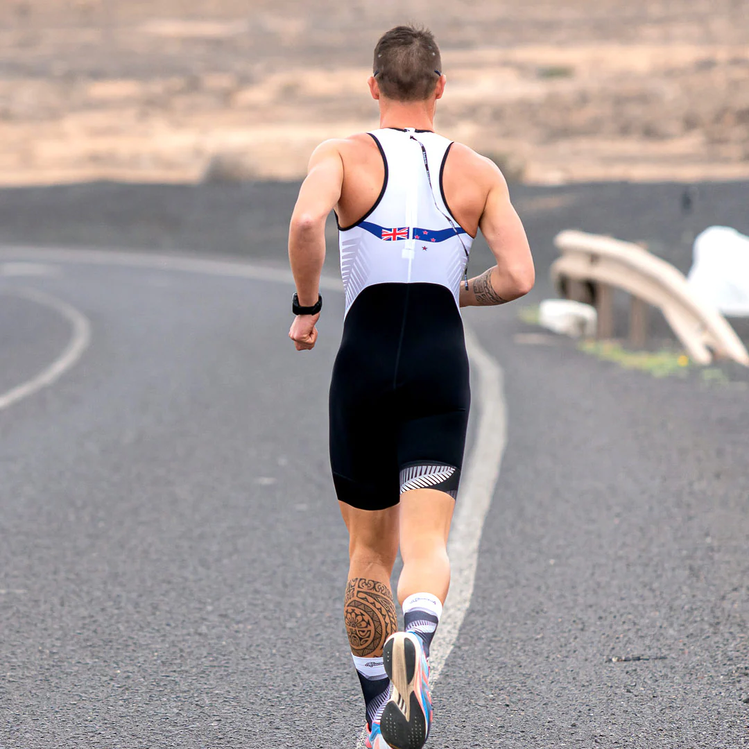 Ultra-légère, cette trifonction ne possède pas de poche pour un hydrodynamisme optimal en cas de natation sans néoprène. Sa chamoisine « mono-pad » ne retient pas l’eau et se fait oublier lors de votre course à pied ! Kiwami fabrique les NATION aux couleurs de TOUS les pays: demandez le vôtre à [email protected].
