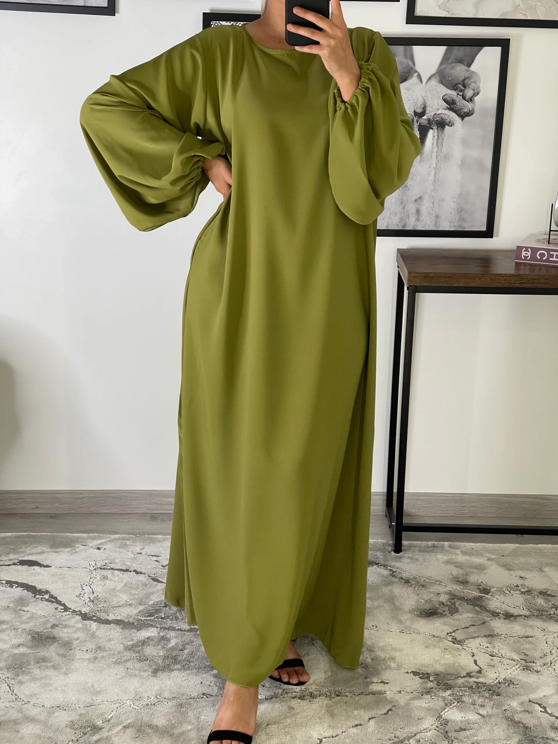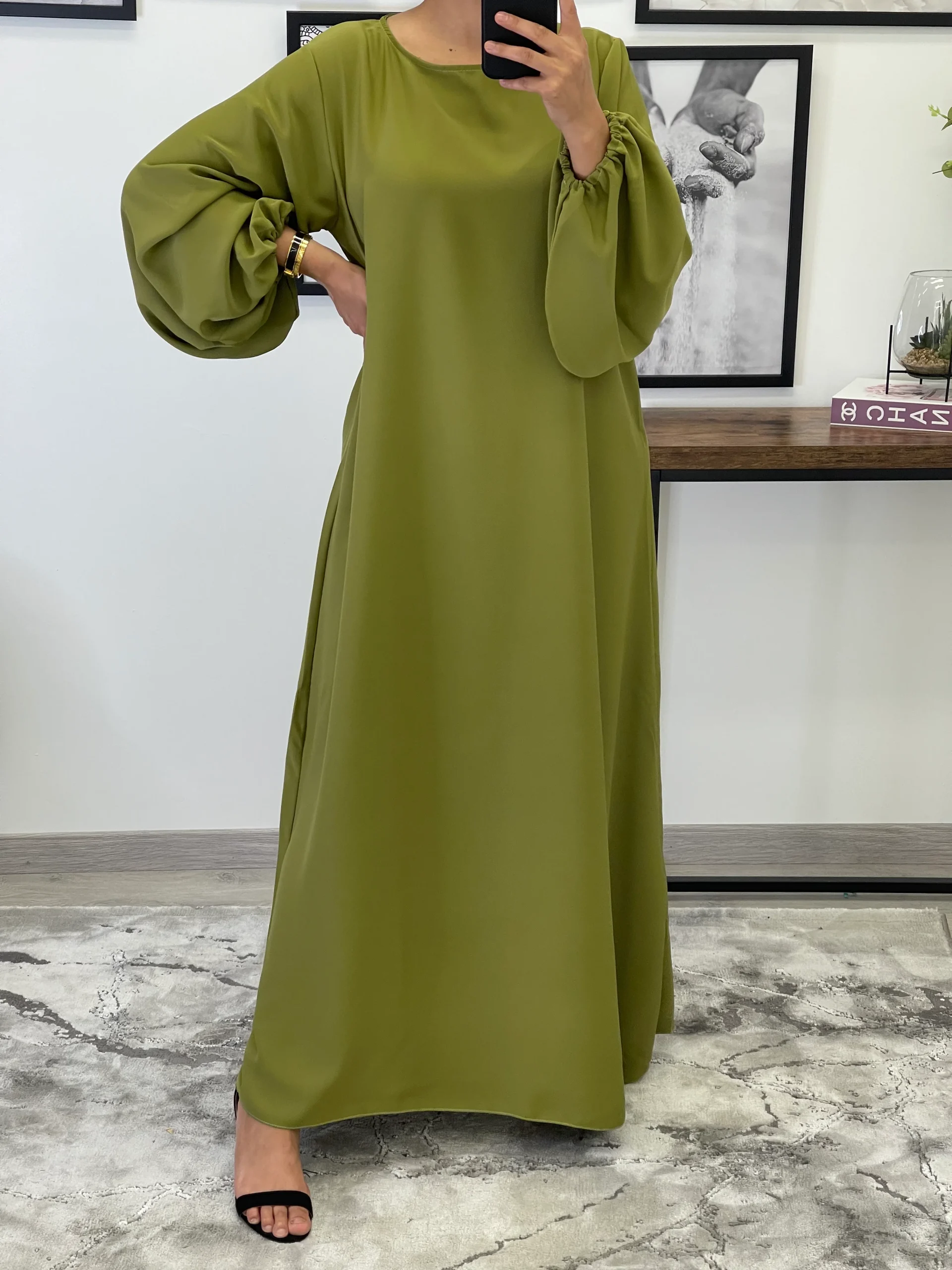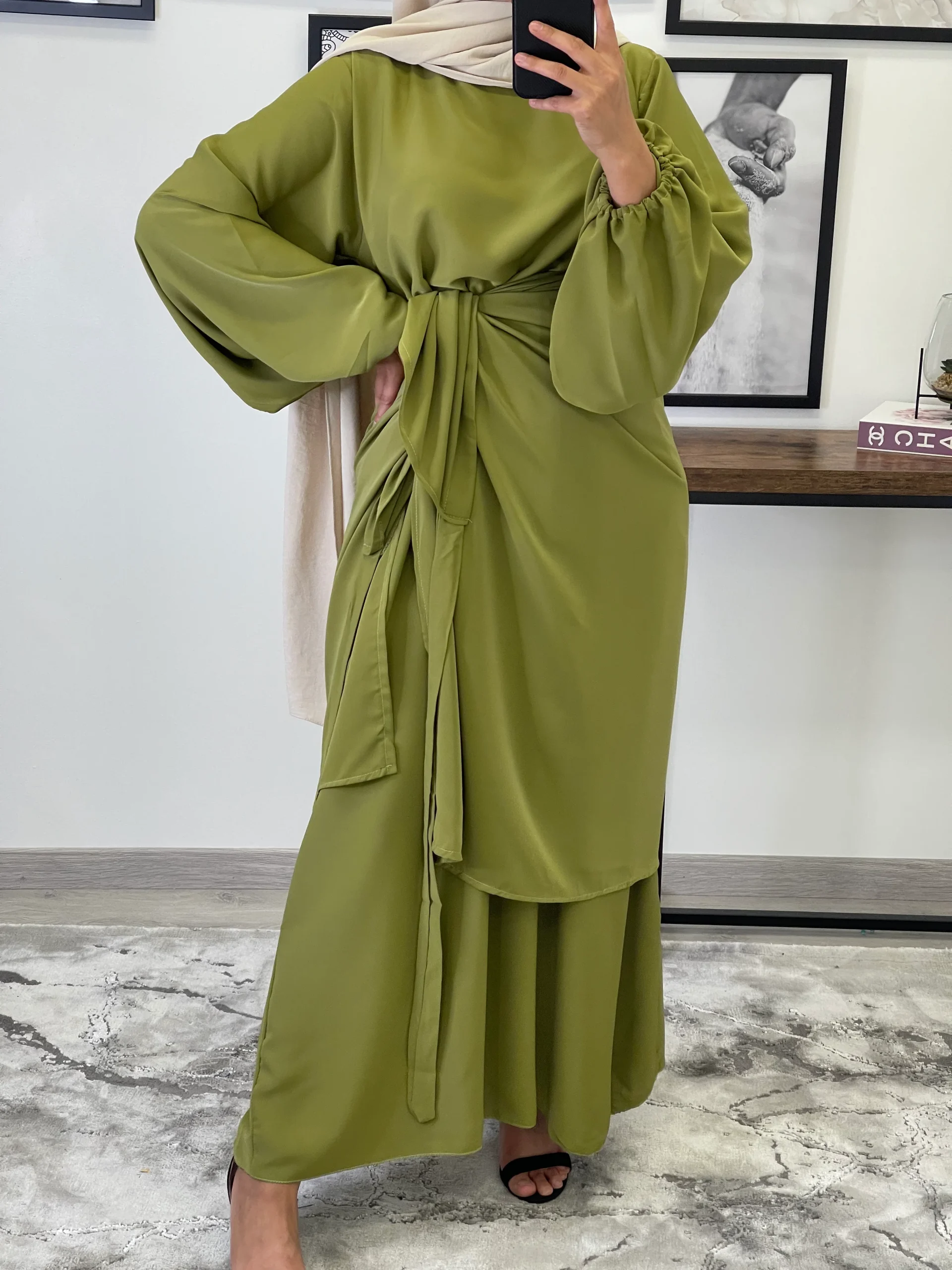 Robe / Abaya coupe ample, manche ballon. L’ensemble est composé de deux pièces : une robe et une sur jupe Peut également se porter seul sans la surjupe. Guide des tailles: Taille SM : 36/42 Longueur: environ 140 cm Taille LXL : 42 / 46 Longueur: environ 142 cm Le modèle mesure 1m 70 et […]