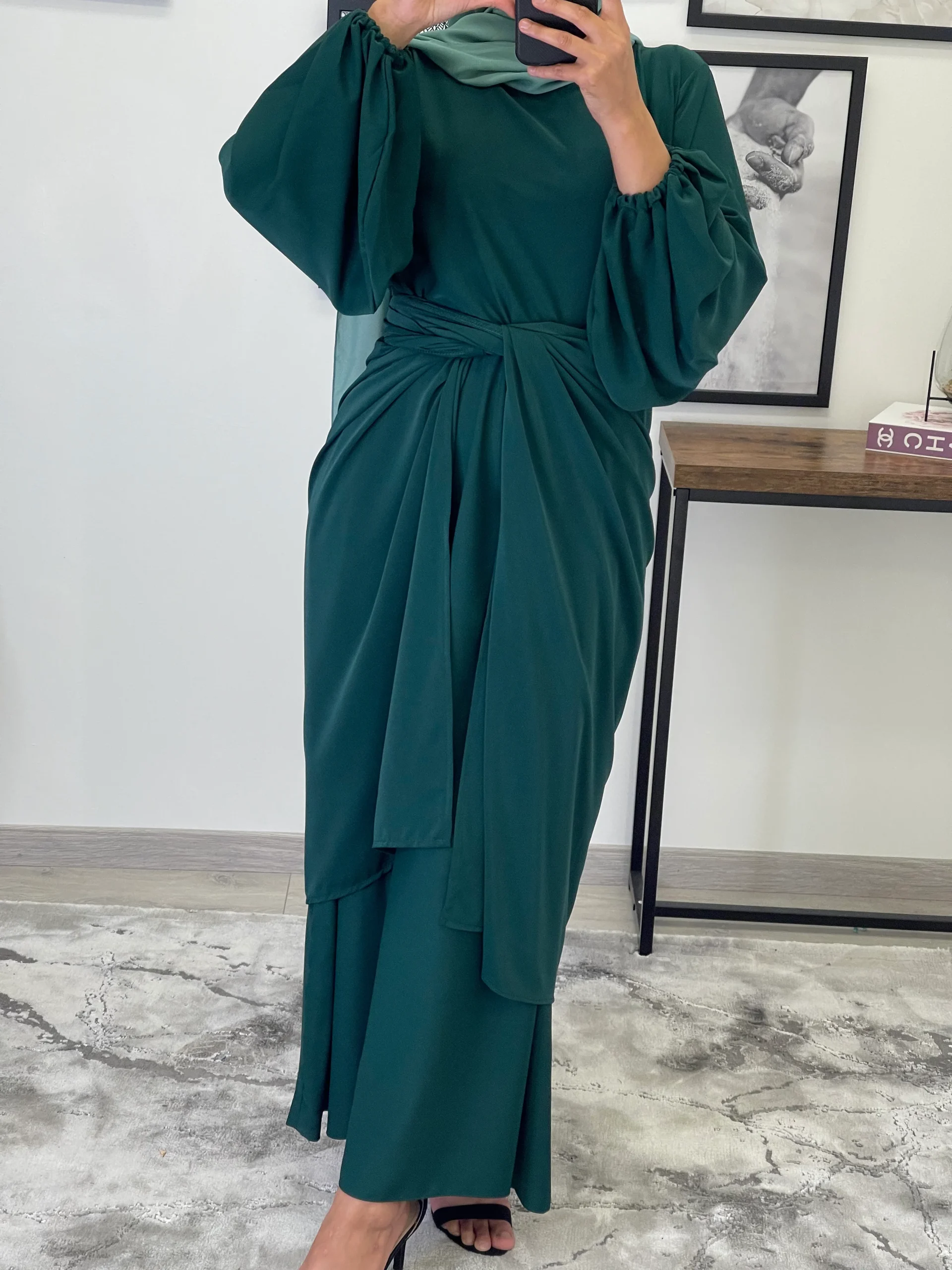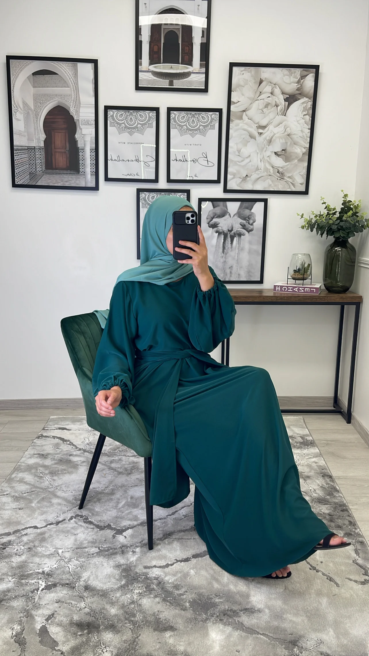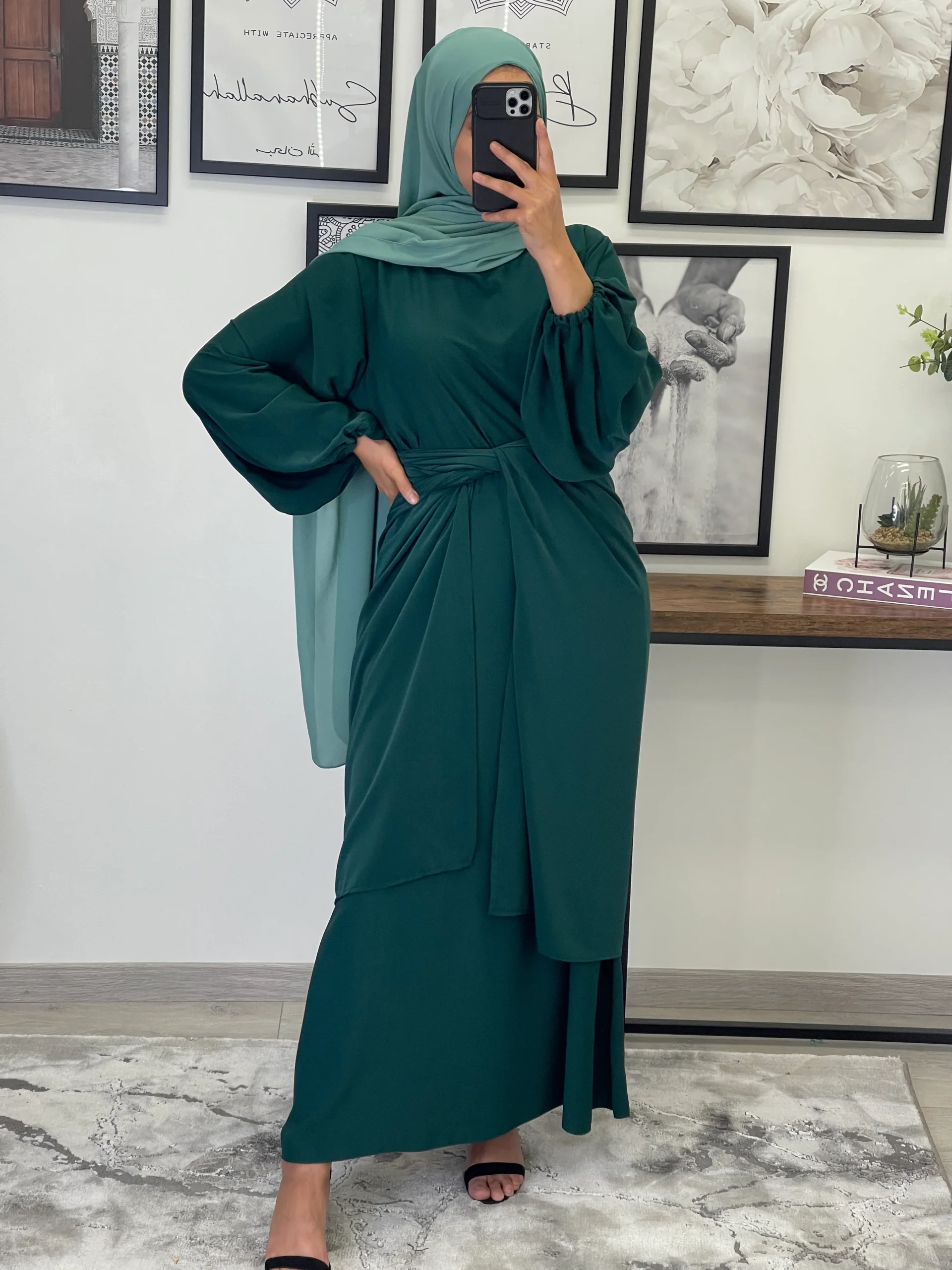 Robe / Abaya coupe ample, manche ballon. L’ensemble est composé de deux pièces : une robe et une sur jupe Peut également se porter seul sans la surjupe. Guide des tailles: Taille SM : 36/42 Longueur: environ 140 cm Taille LXL : 42 / 46 Longueur: environ 142 cm Le modèle mesure 1m 70 et […]