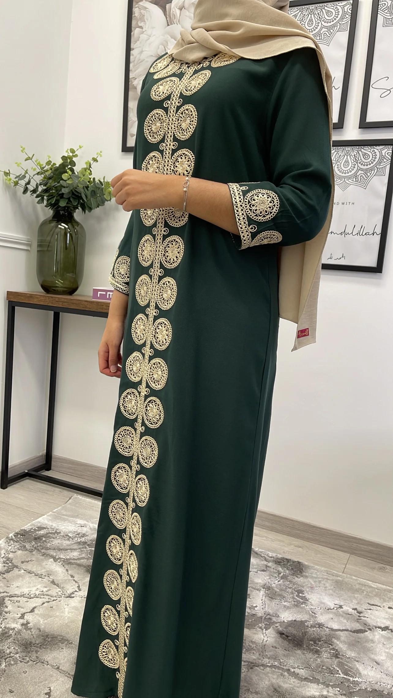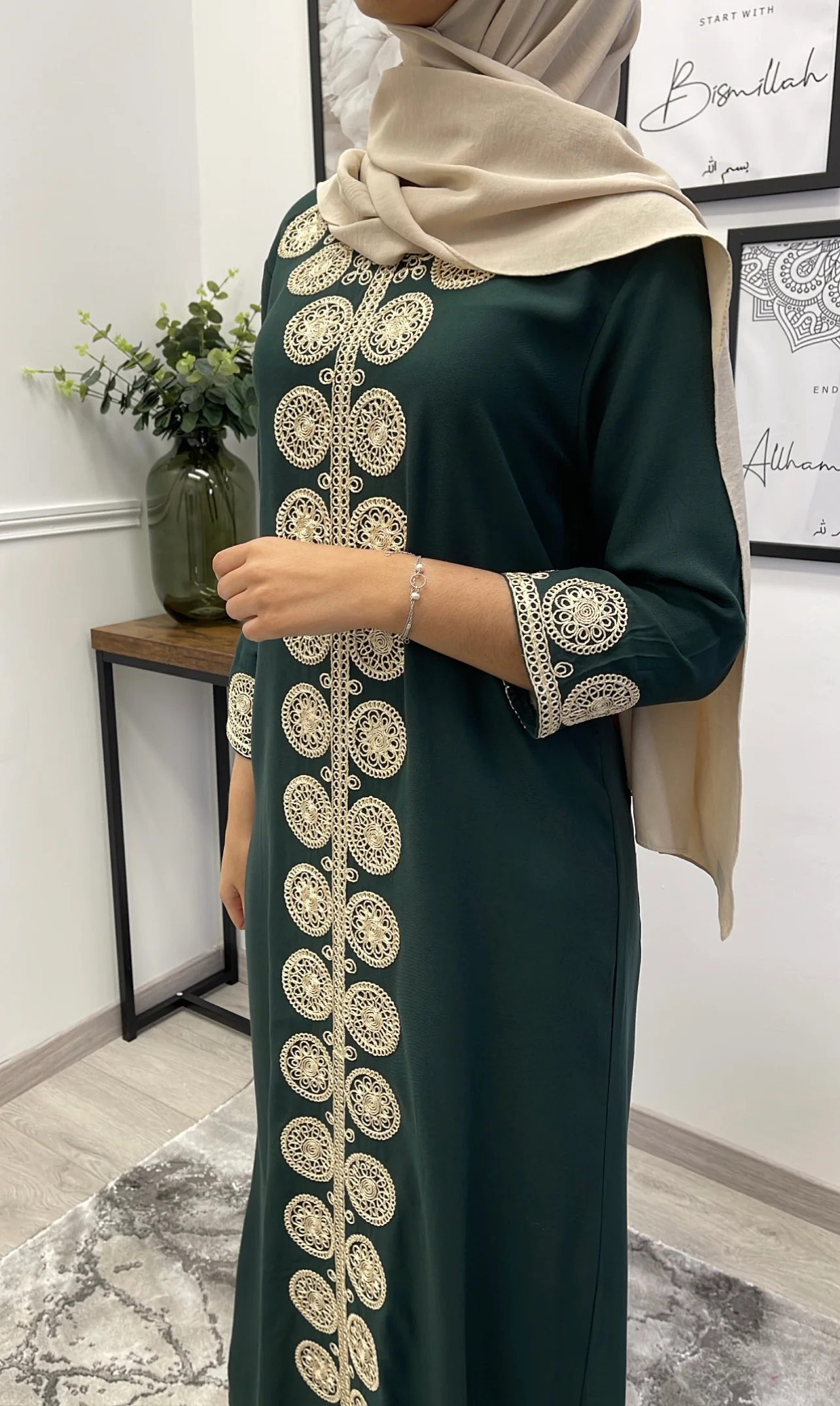 ABAYA AMINA VERT CANARD