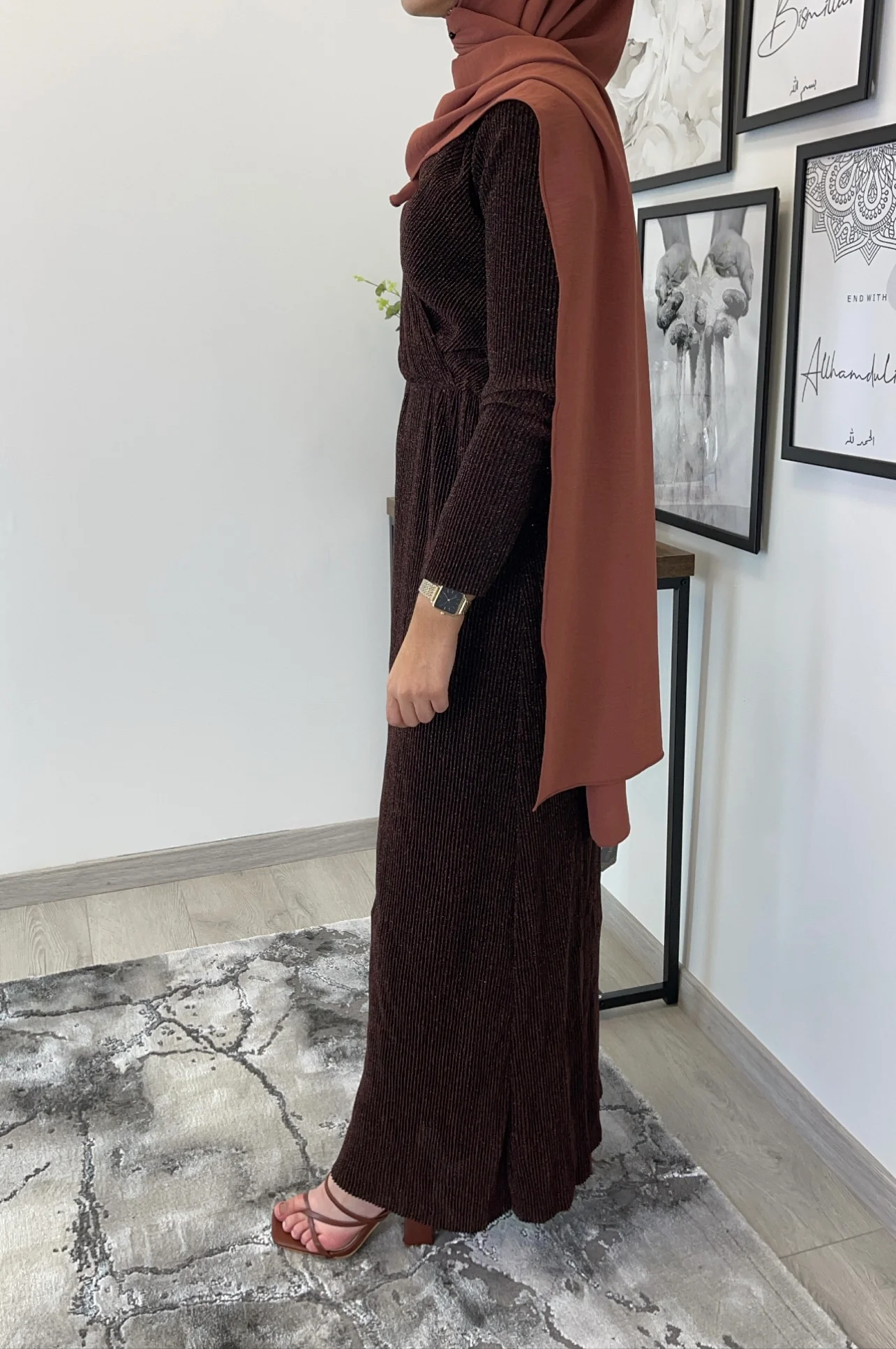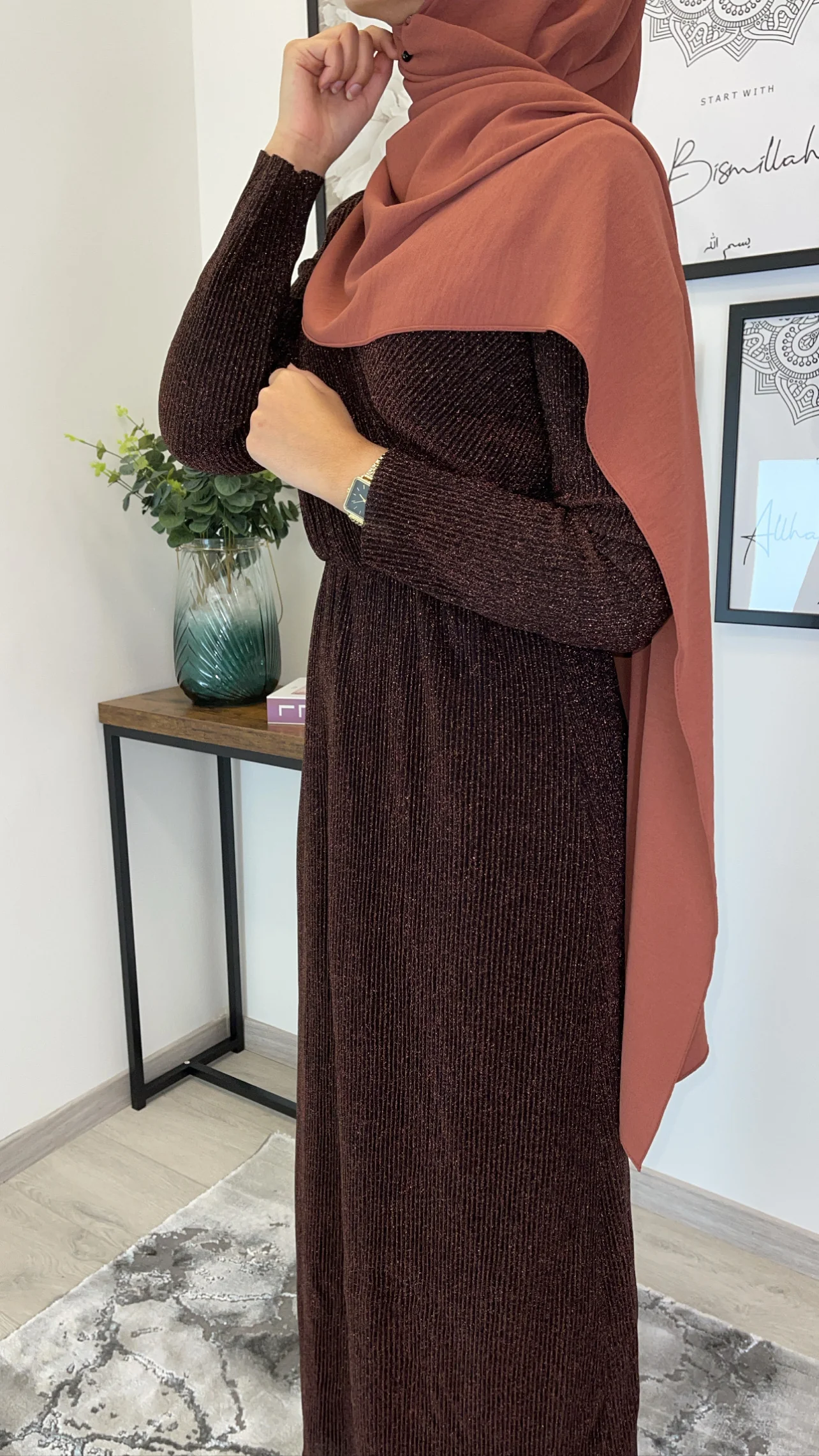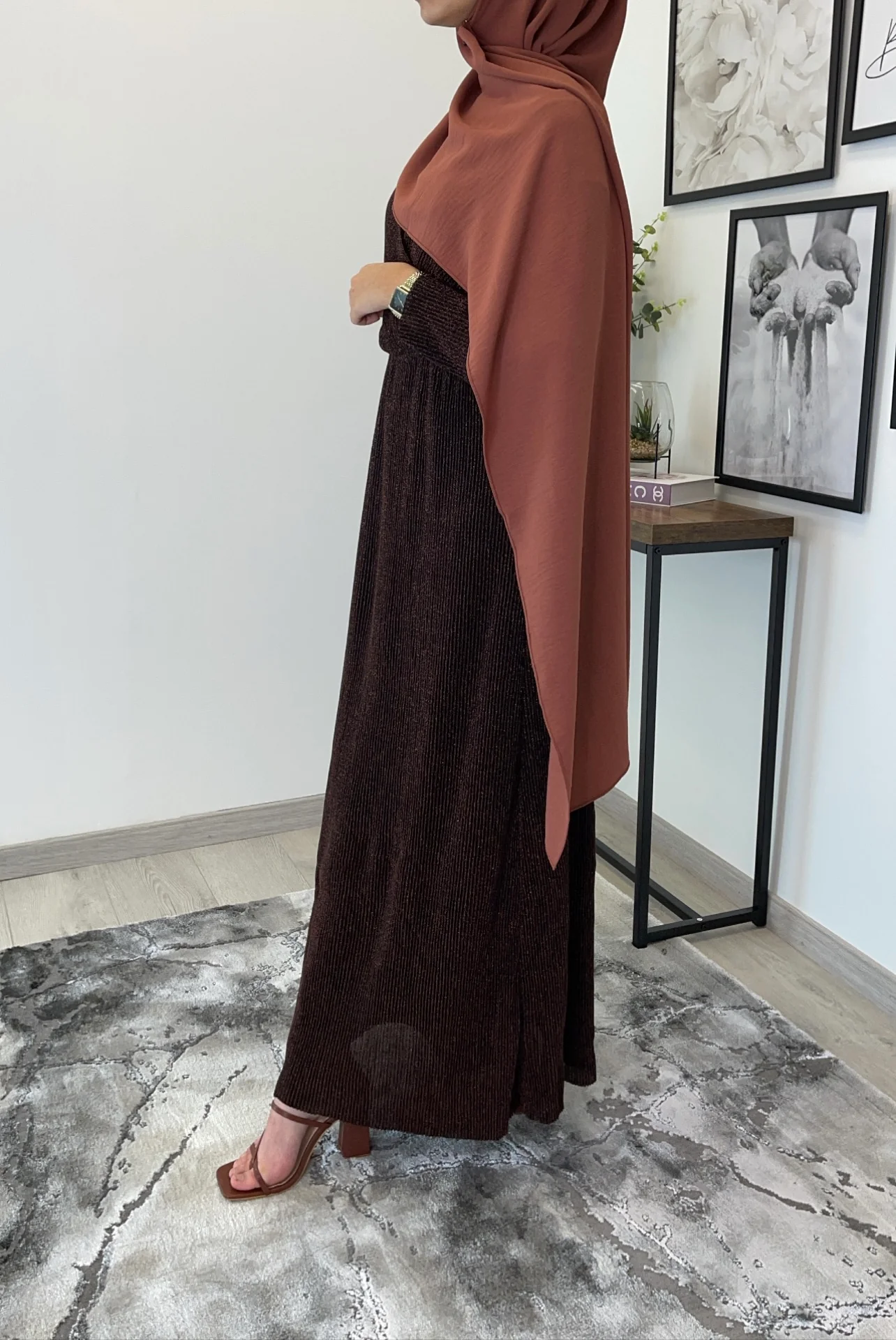 Magnifique robe longue avec décolleté cache cœur brillante plissée . Tissu doublé sauf les bras (reste néanmoins opaque), élastique sur la taille . Longueur de la robe 150cm. Tailles disponibles : S/M : 36/38 M/L : 40/42 L/XL: 42/44. Le mannequin porte du S/M , mesure 170 cm et porte habituellement du 36. h1541