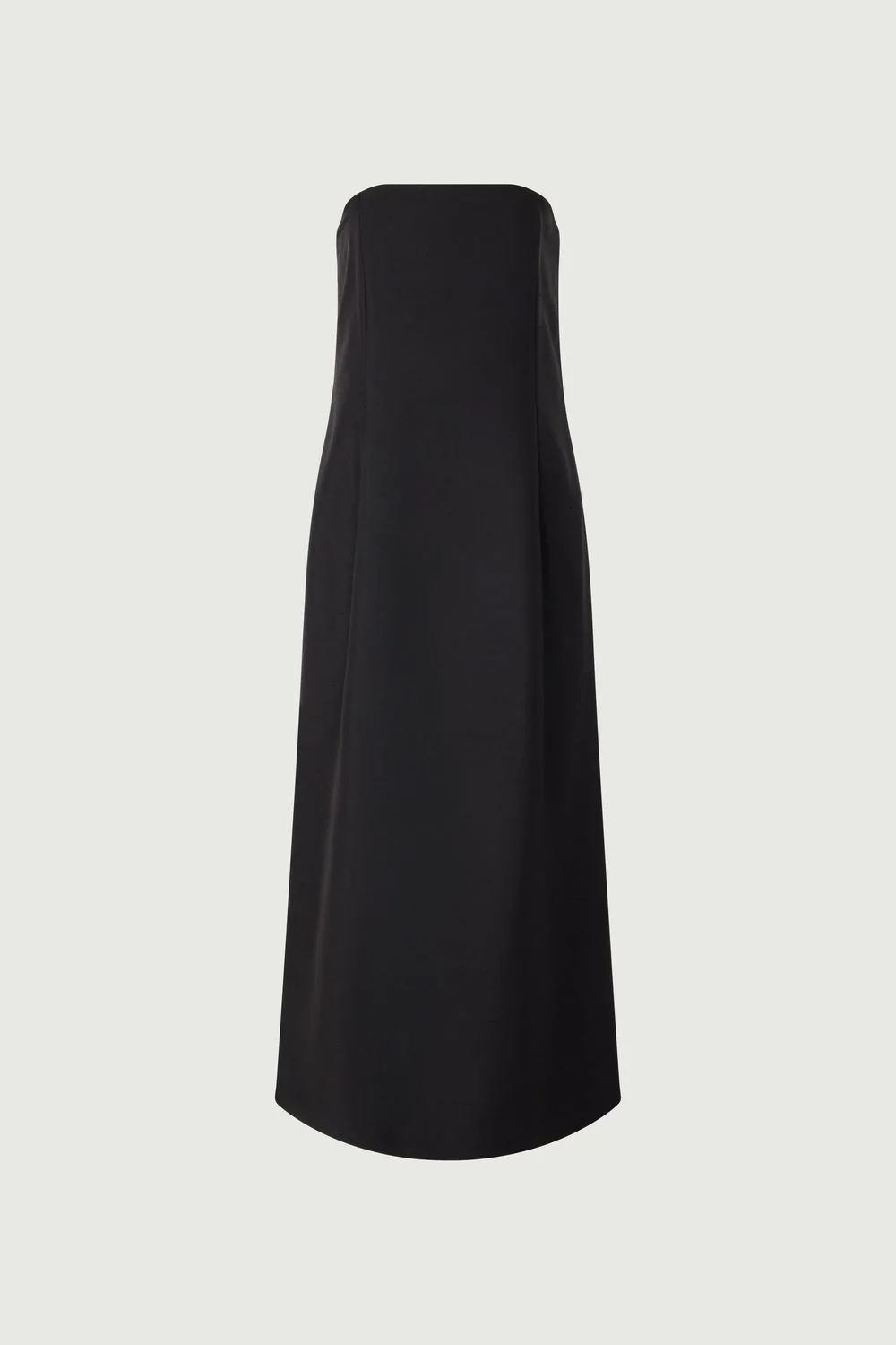 NORA est une robe longue bustier confectionnée dans une laine-viscose flammée fluide. Sa matière révèle une brillance subtile et des irrégularités naturelles dues à l’effet flammé, qui apportent texture et profondeur à cette silhouette épurée.