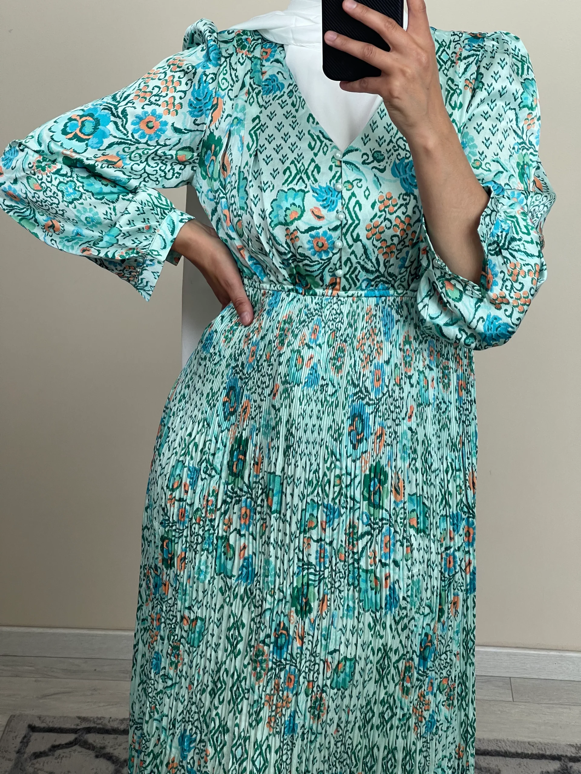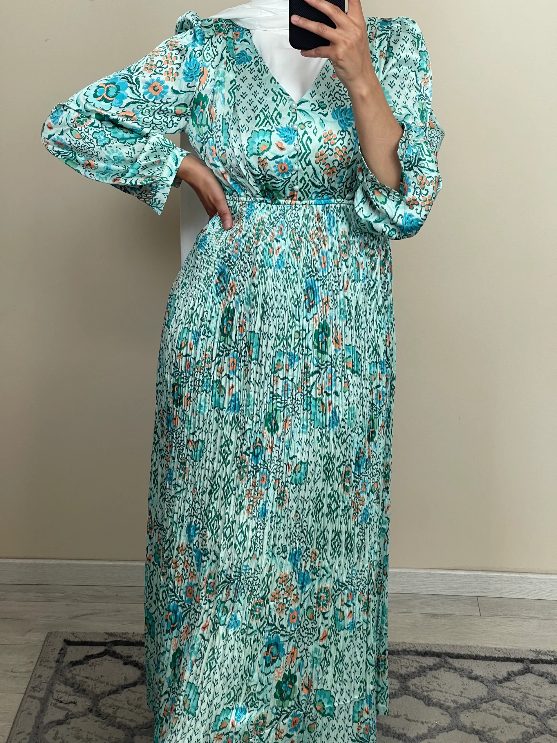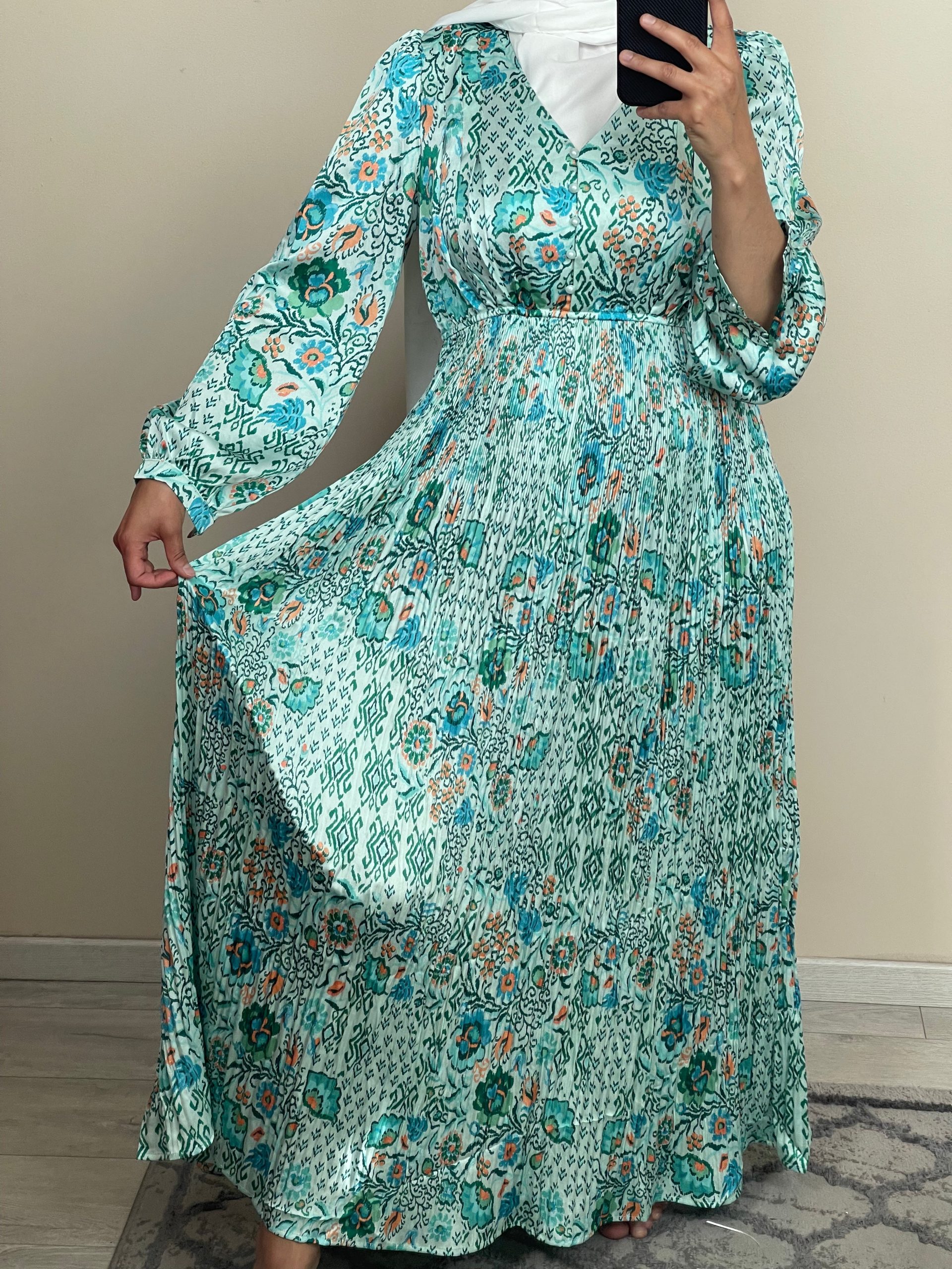 ROBE SATIN PLISSÉE VERT