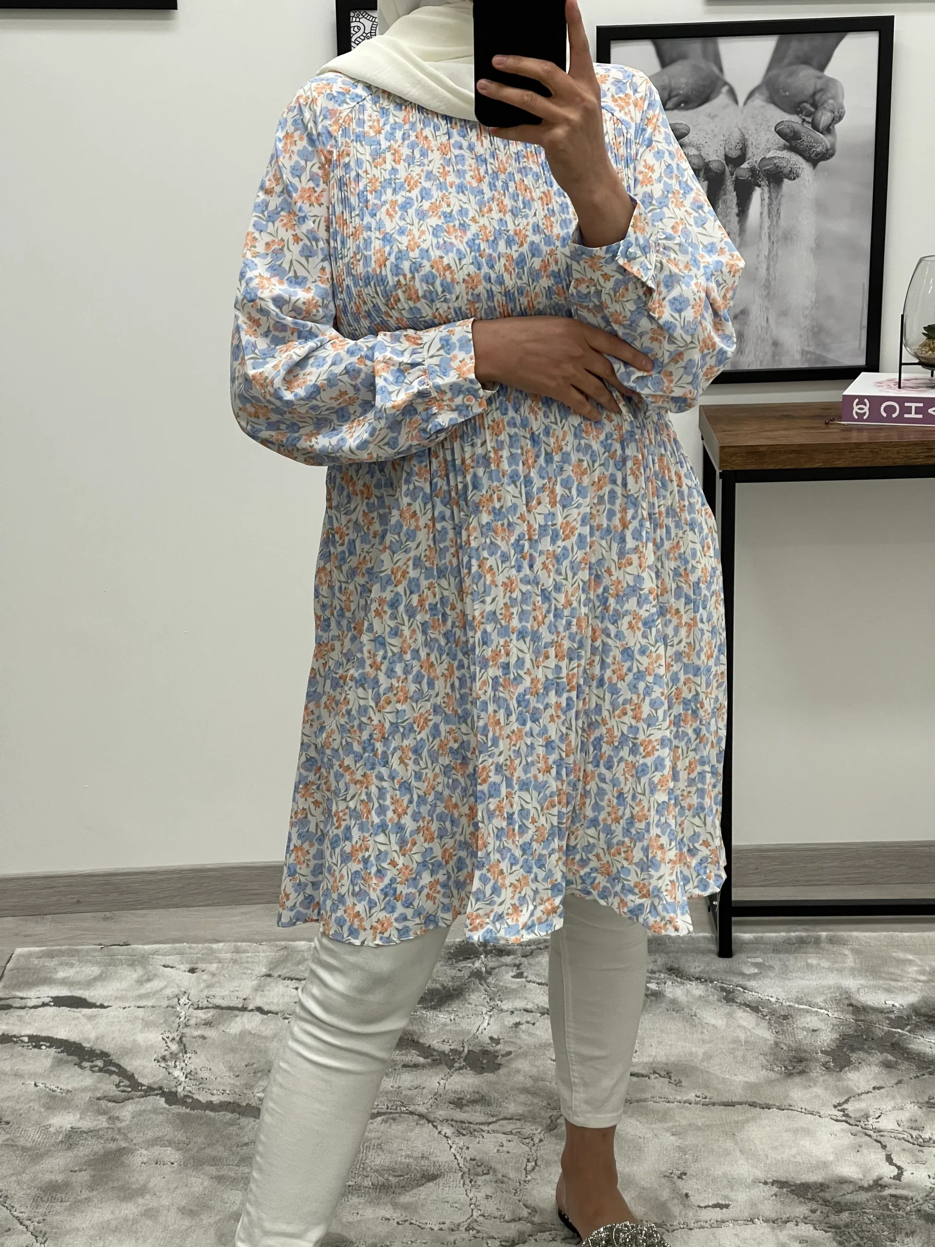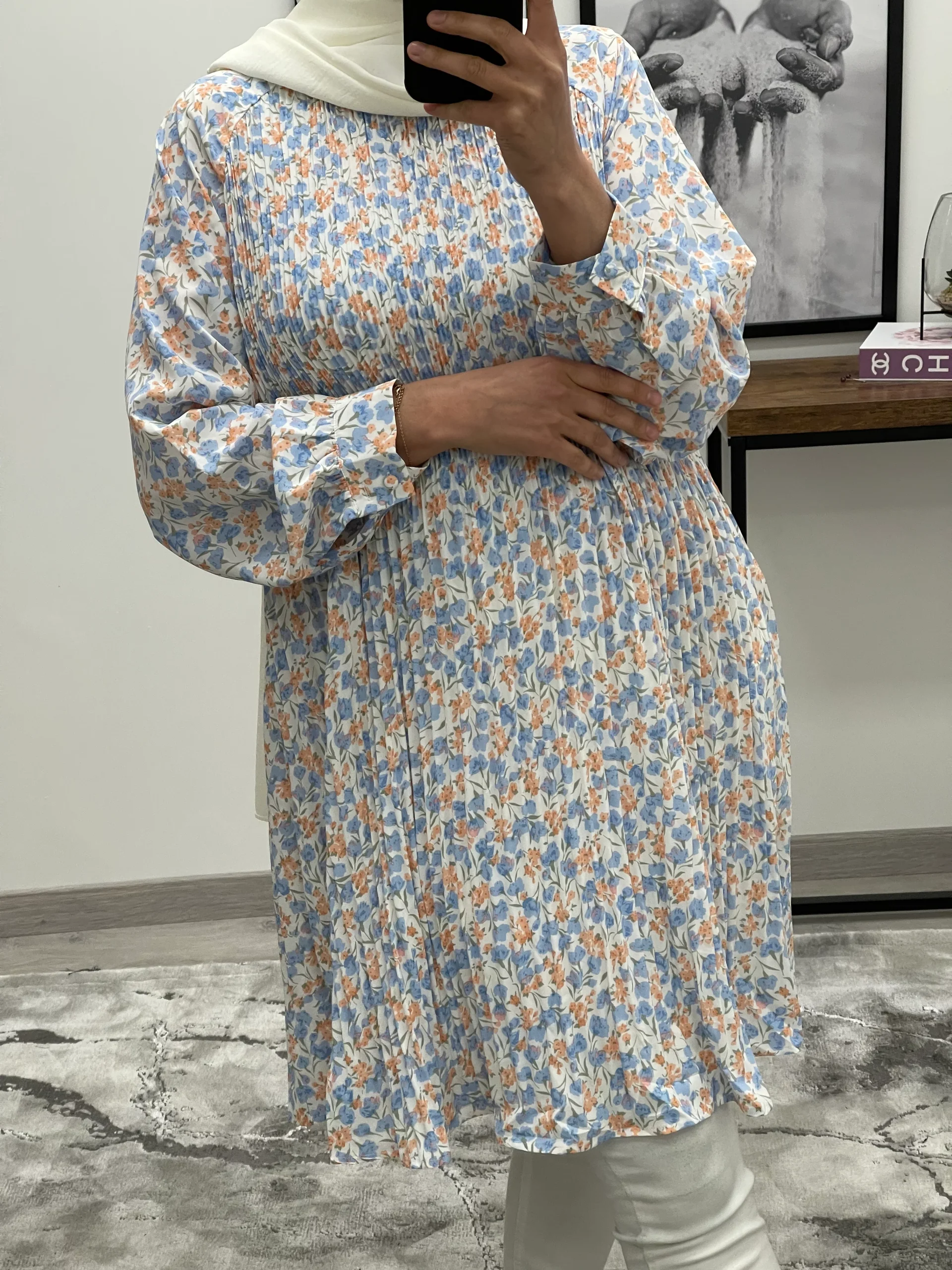ROBE TUNIQUE PLISSÉE PETITES FLEURS BLEU
