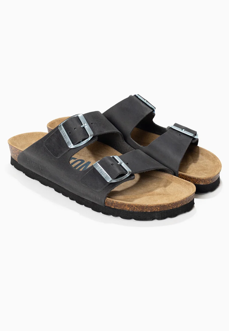 Sandales 2 Brides Atlas Anthracite 100% Cuir