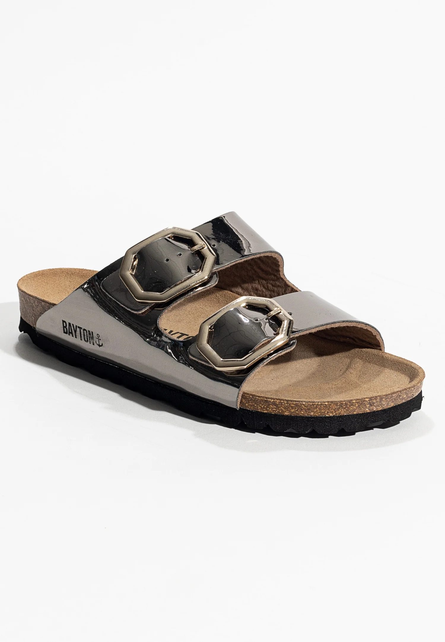 Réalisée en matière végane, notre emblématique sandale souligne son originalité grâce à ses 2 boucles octogonales. Sa semelle anatomique conçue à base de matières nobles vous garantit confort et bien-être.