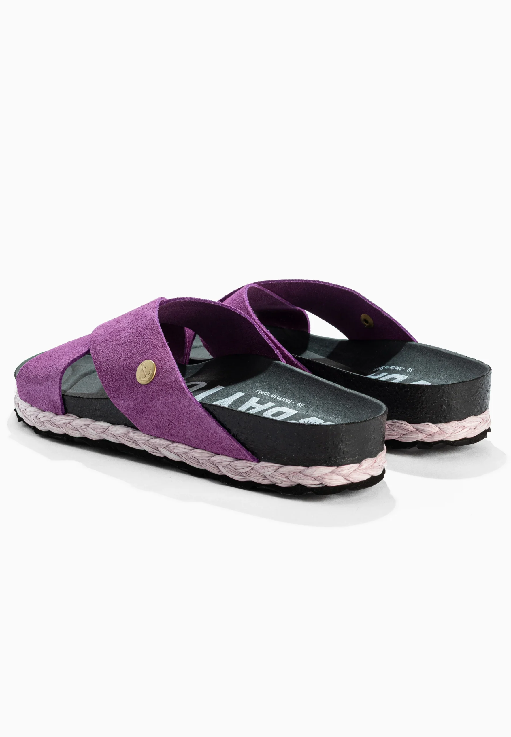 Sandales 2 Brides Alicante Violet en Cuir Suédé