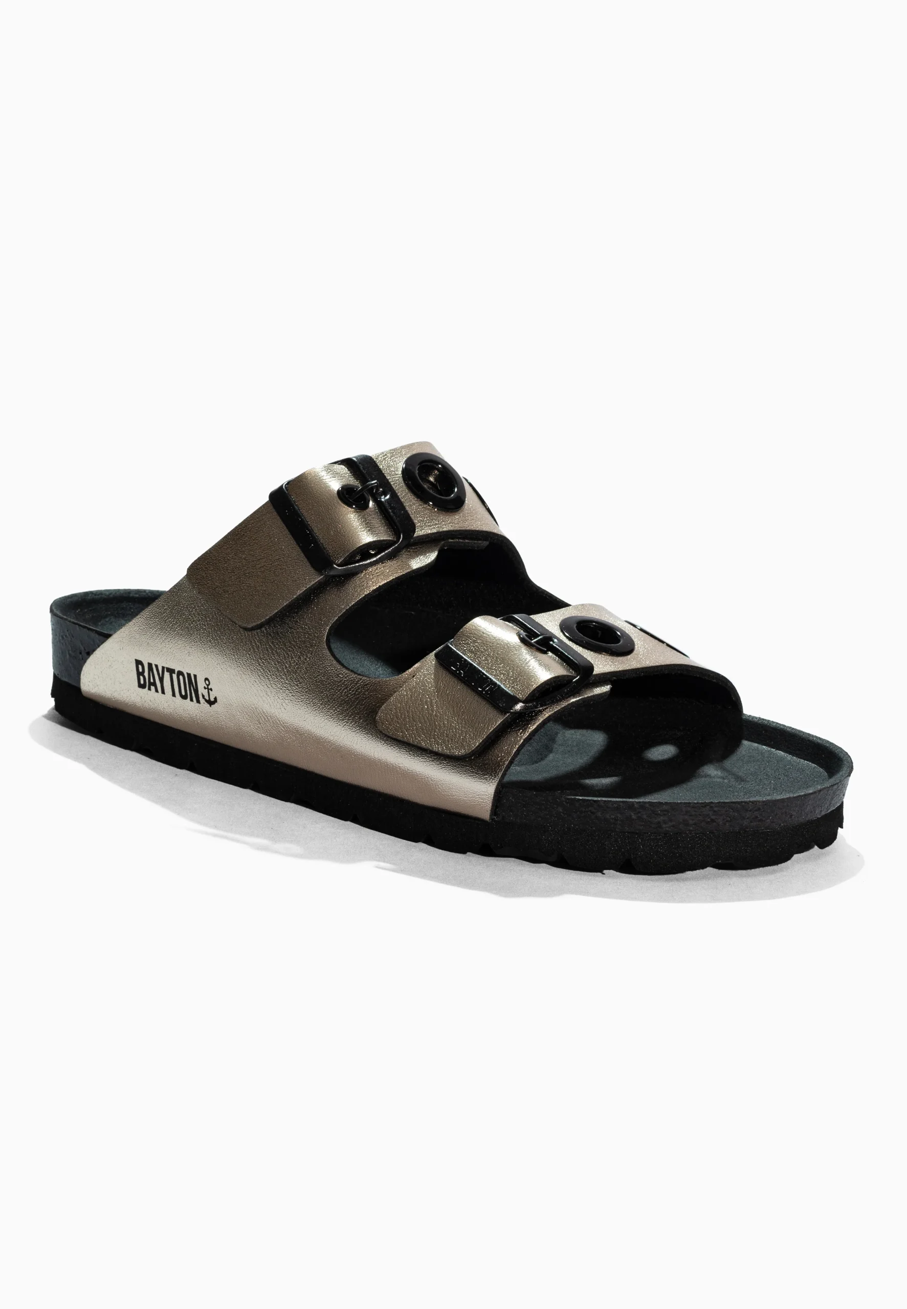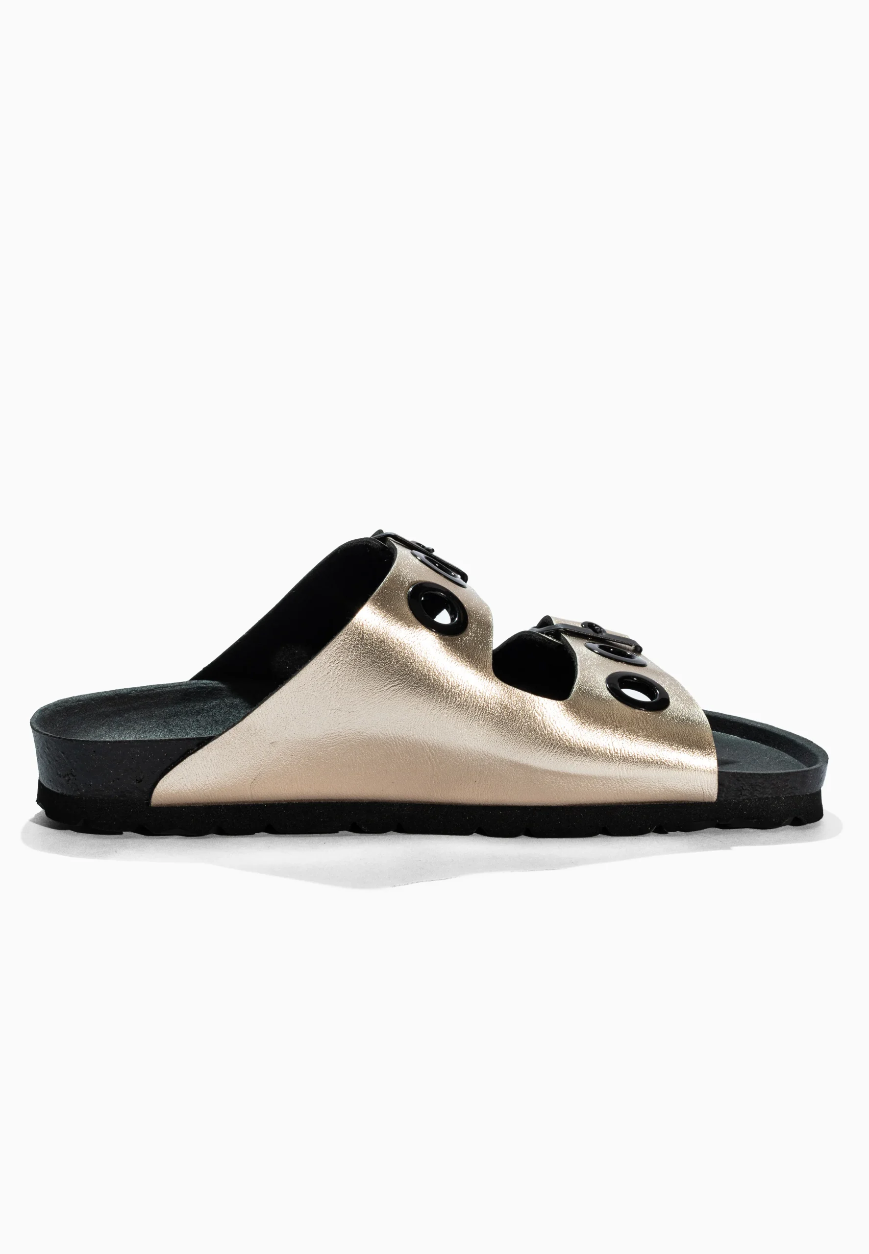 Le confort peut aussi être chic ! Réalisé en matière végane, notre emblématique modèle à boucles s’embellit de gros œillets dorés, tels des bijoux ! Sa semelle anatomique conçue à base de matières nobles garantit un réel bien-être du pied.