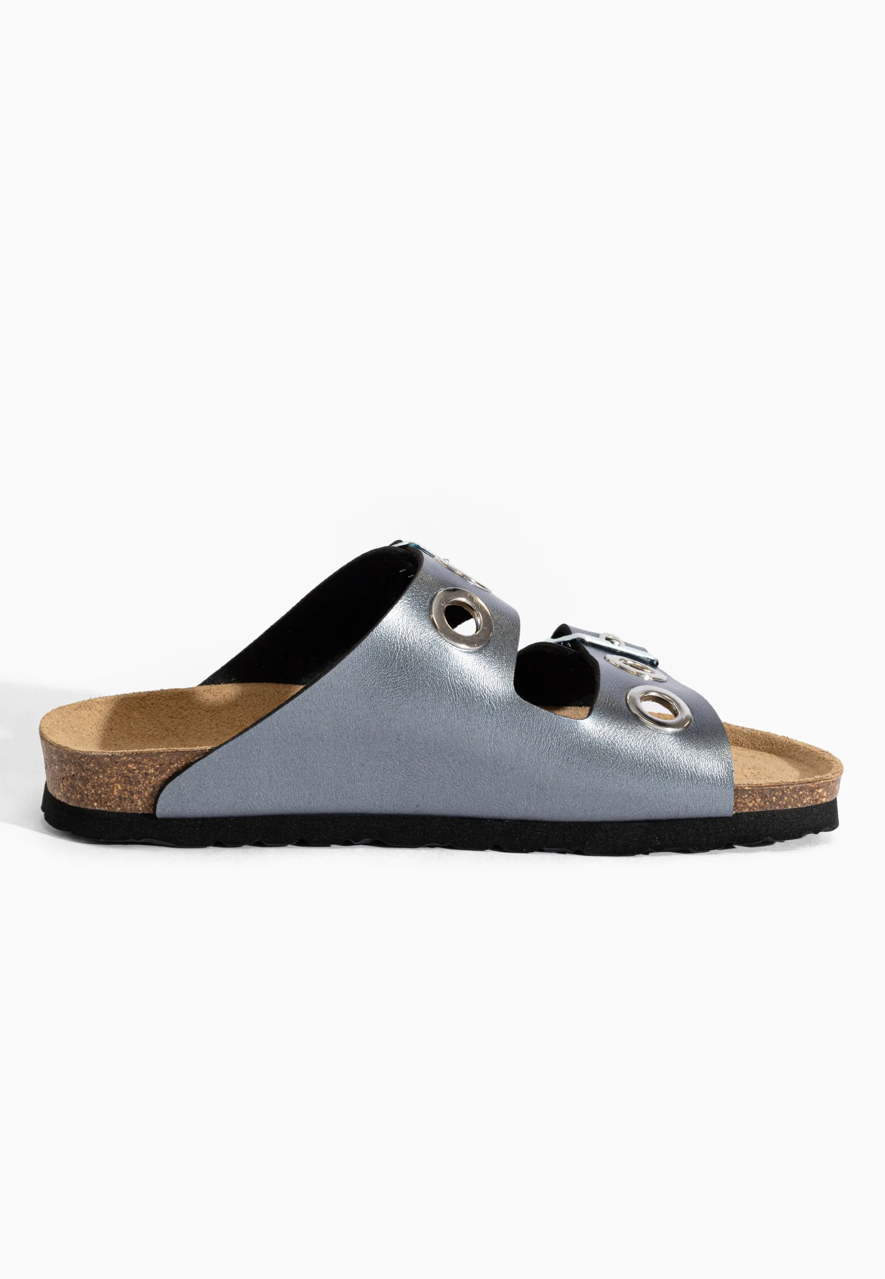 Le confort peut aussi être chic ! Réalisé en matière végane, notre emblématique modèle à boucles s’embellit de gros œillets dorés, tels des bijoux ! Sa semelle anatomique conçue à base de matières nobles garantit un réel bien-être du pied.