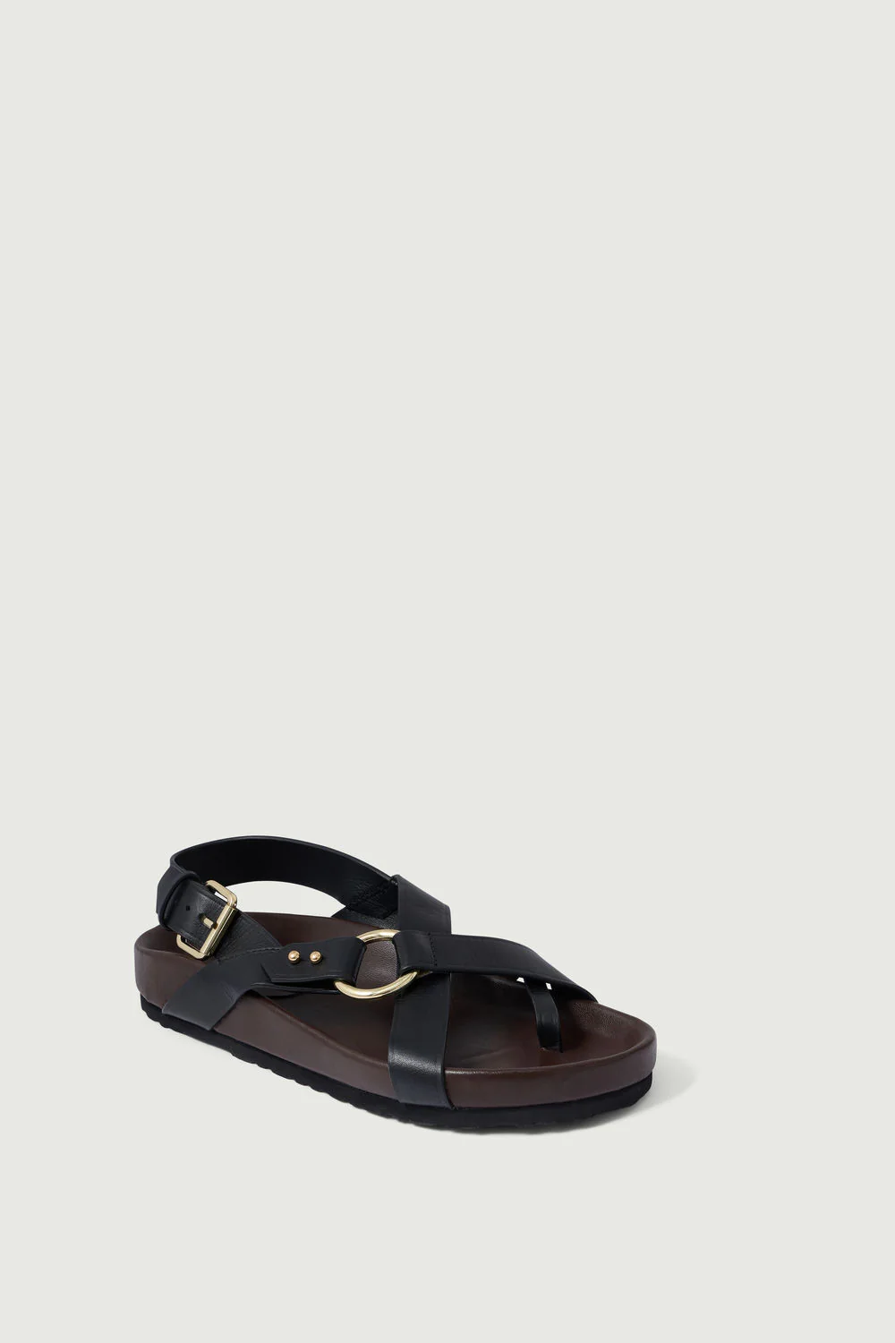 MEXICO est une paire de sandales en cuir. Les brides croisées habillent l’avant du pied et encerclent le pouce. La semelle épaisse (en liège recouvert de cuir) apporte confort et maintient toute la journée. L’anneau doré signe cette sandale iconique qui se décline chaque saison dans de nouveaux coloris exclusifs. Sandales en cuir noir – […]