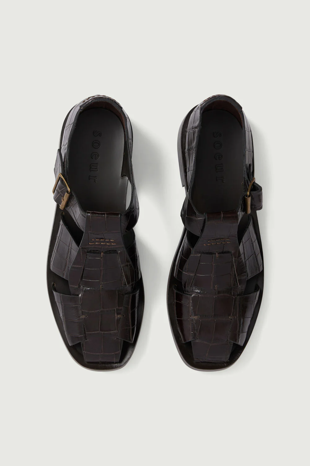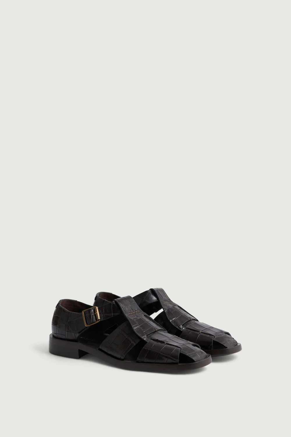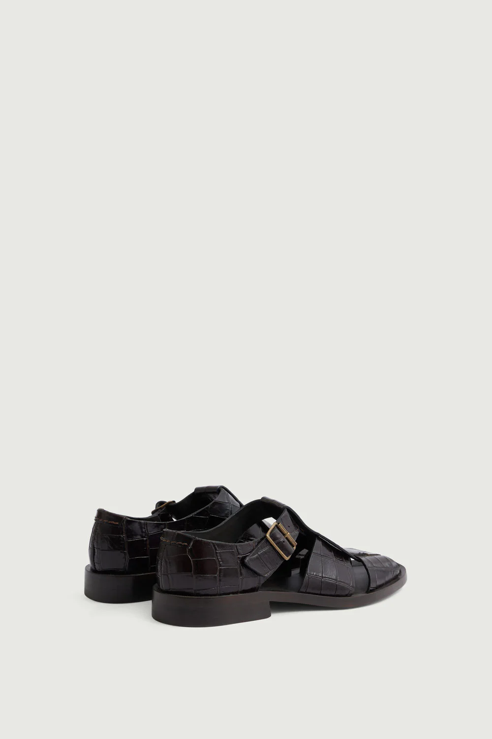 – Sandales à bride avec boucle dorée antique – Semelle en cuir – Hauteur de tige 6cm – Hauteur de talon 2,5cm – Cuir LWG (Leather Working Group)