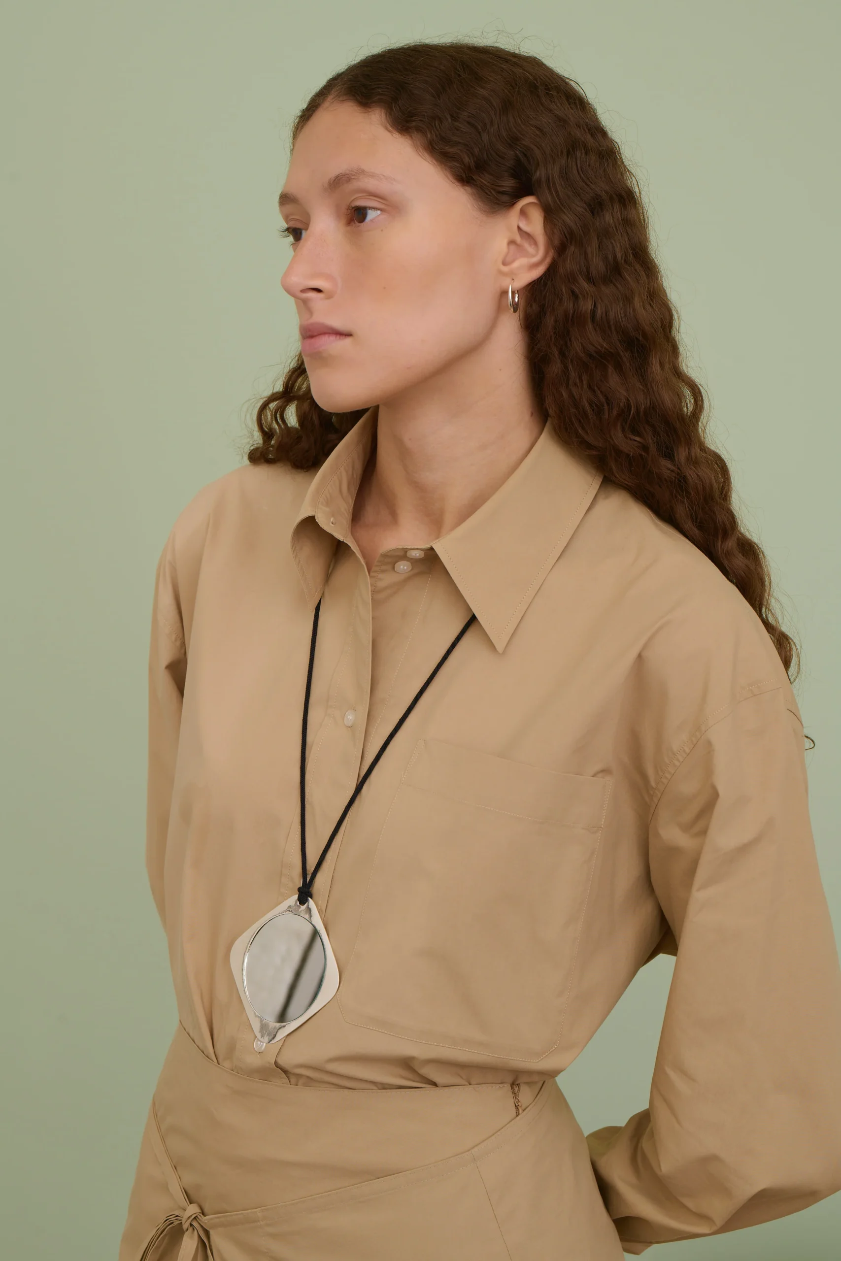 La ligne PLATE est résolument minimaliste et graphique. S’alternent et se superposent au porté les formes angulaires et arrondies de bracelets, bagues et boucles d’oreilles. Relevé par une alternance de couleur argent et doré, les bijoux sont confectionnés en vermeil. Sautoir en argent – Placage en argent 925 10 microns