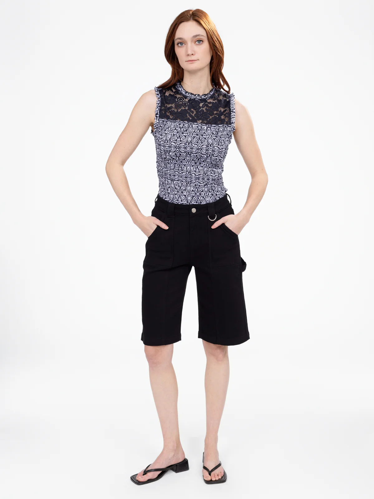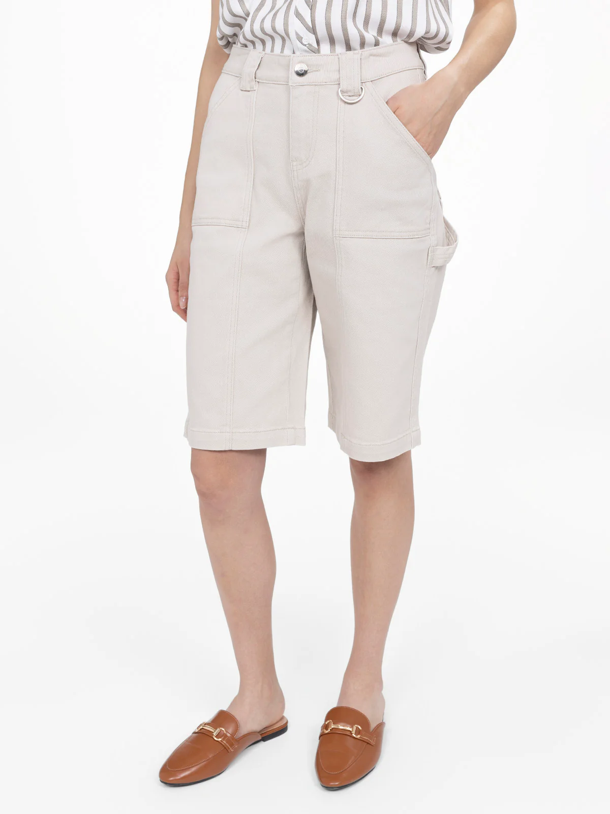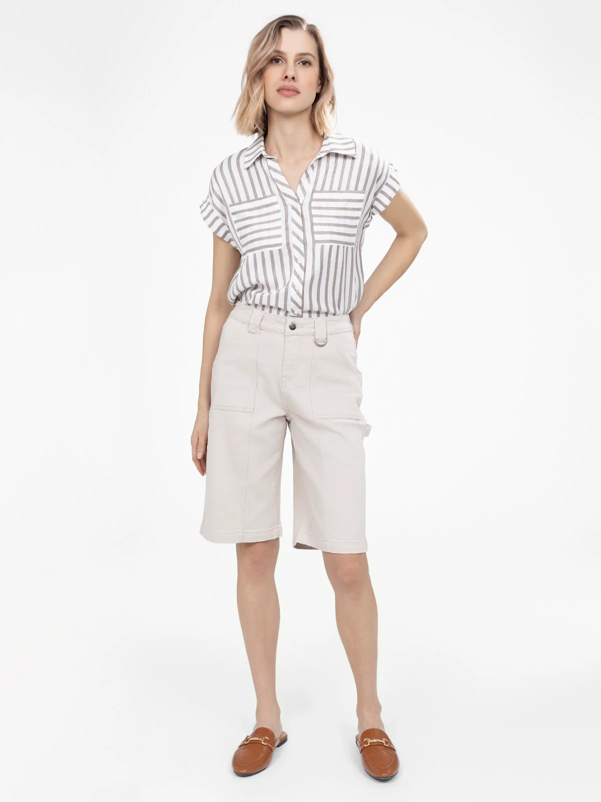 Ce short revisite l’esprit utilitaire avec ses grandes poches plaquées et son passant latéral inspiré des pantalons cargo. Sa coupe droite structurée et sa matière résistante en font un allié parfait pour un style pratique et tendance.