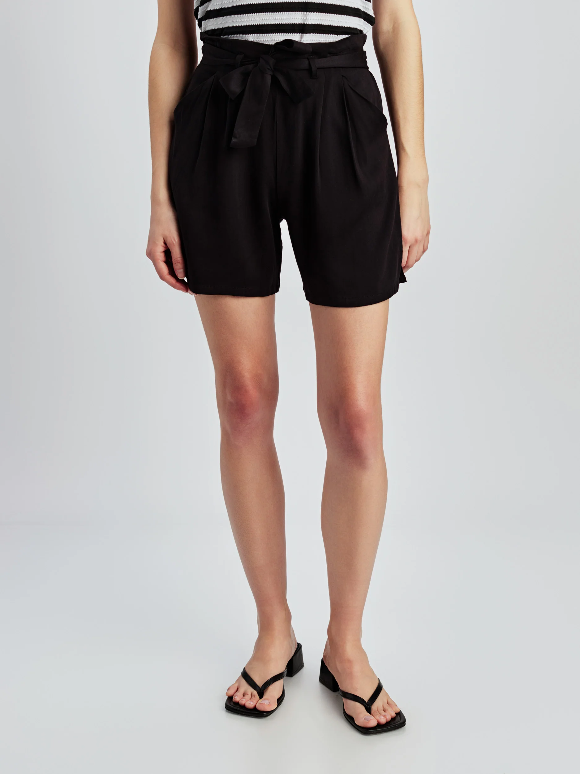 Short ample avec une ceinture en tissu , des poches inclinées et des plis sur le devant. Que vous l’associiez à un simple tee-shirt ou à un chemisier, ce short est très élégant.