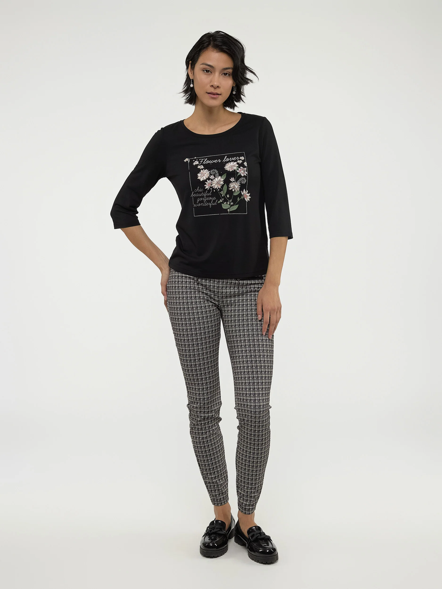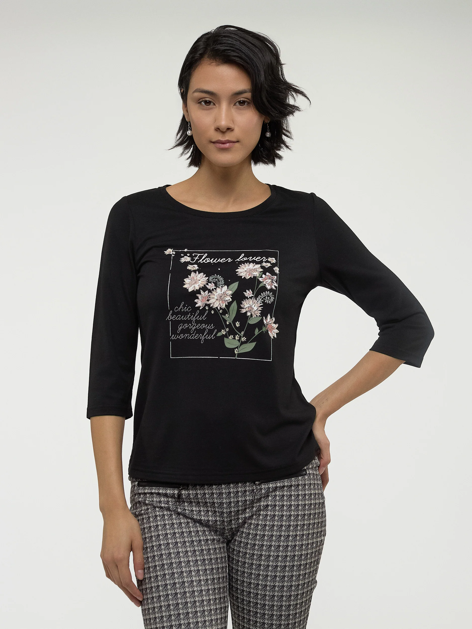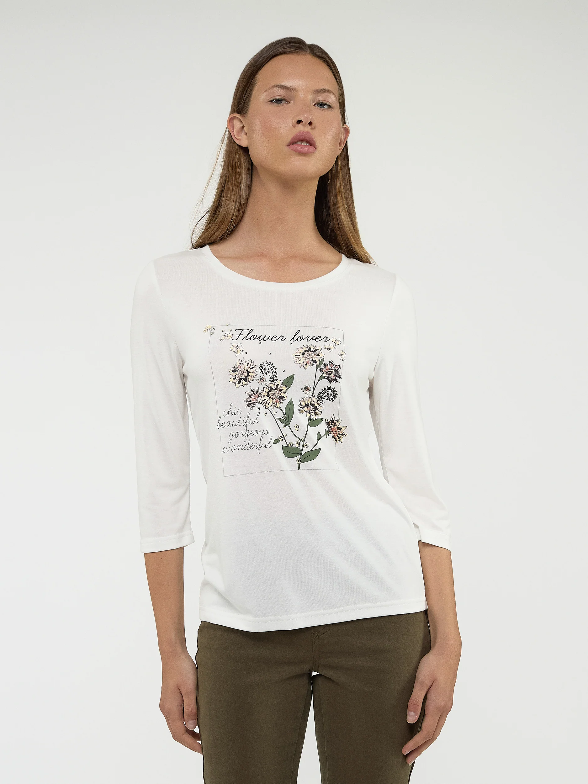 Doté d’un motif graphique charmant, ce t-shirt à col rond et manches 3/4 est une pièce facile et confortable à porter au quotidien.