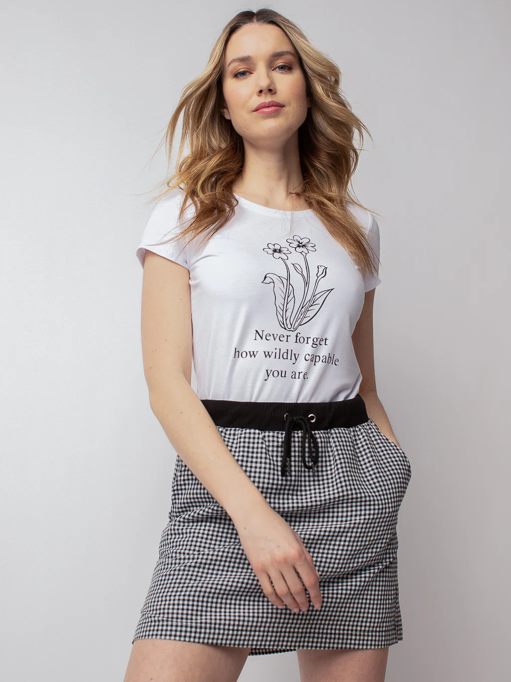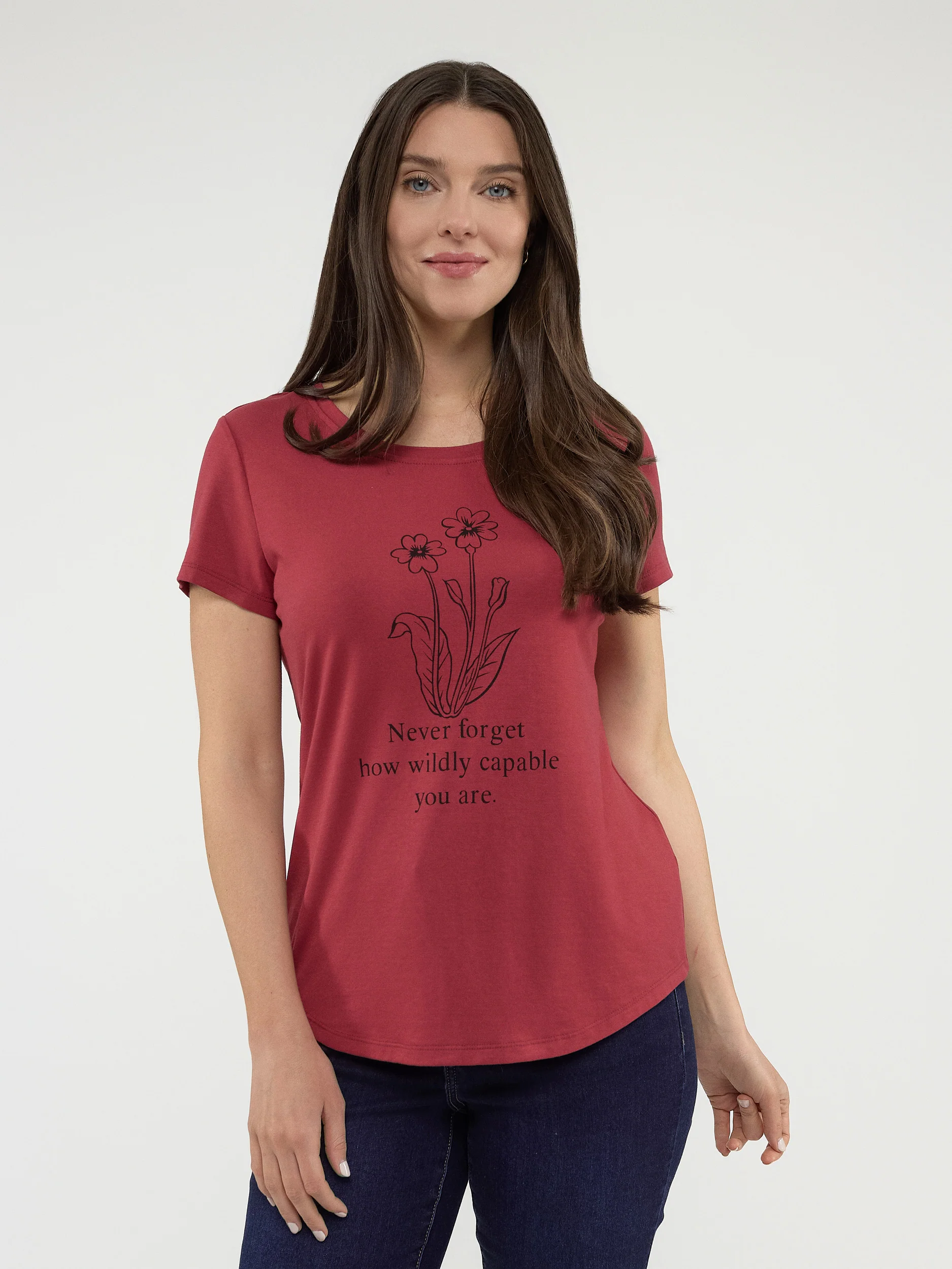 T-shirt à manches courtes avec encolure ronde et silhouette semi-ajustée. L’imprimé charmant s’associe sans effort à tout, des jeans aux joggings en passant par les jupes.