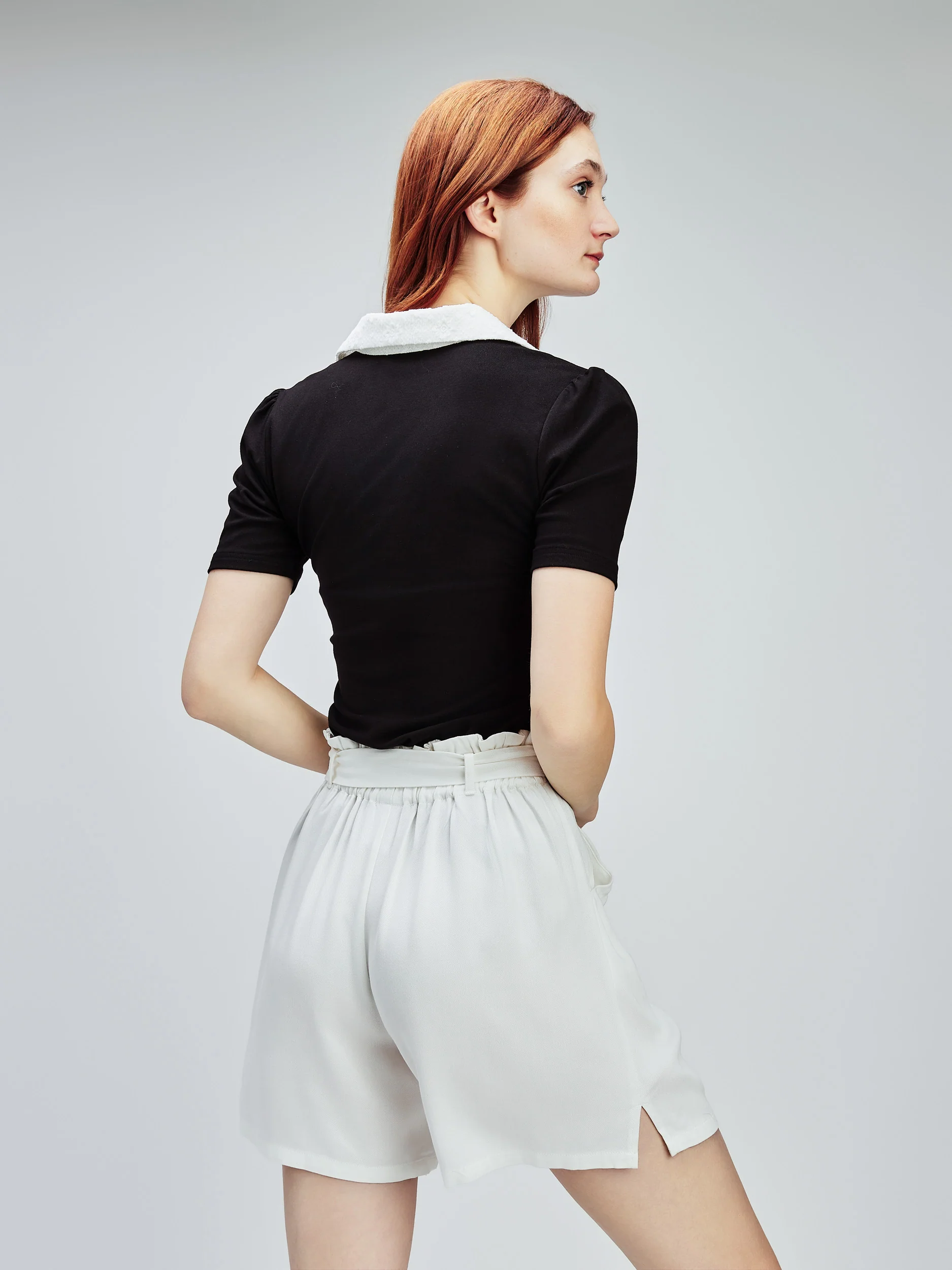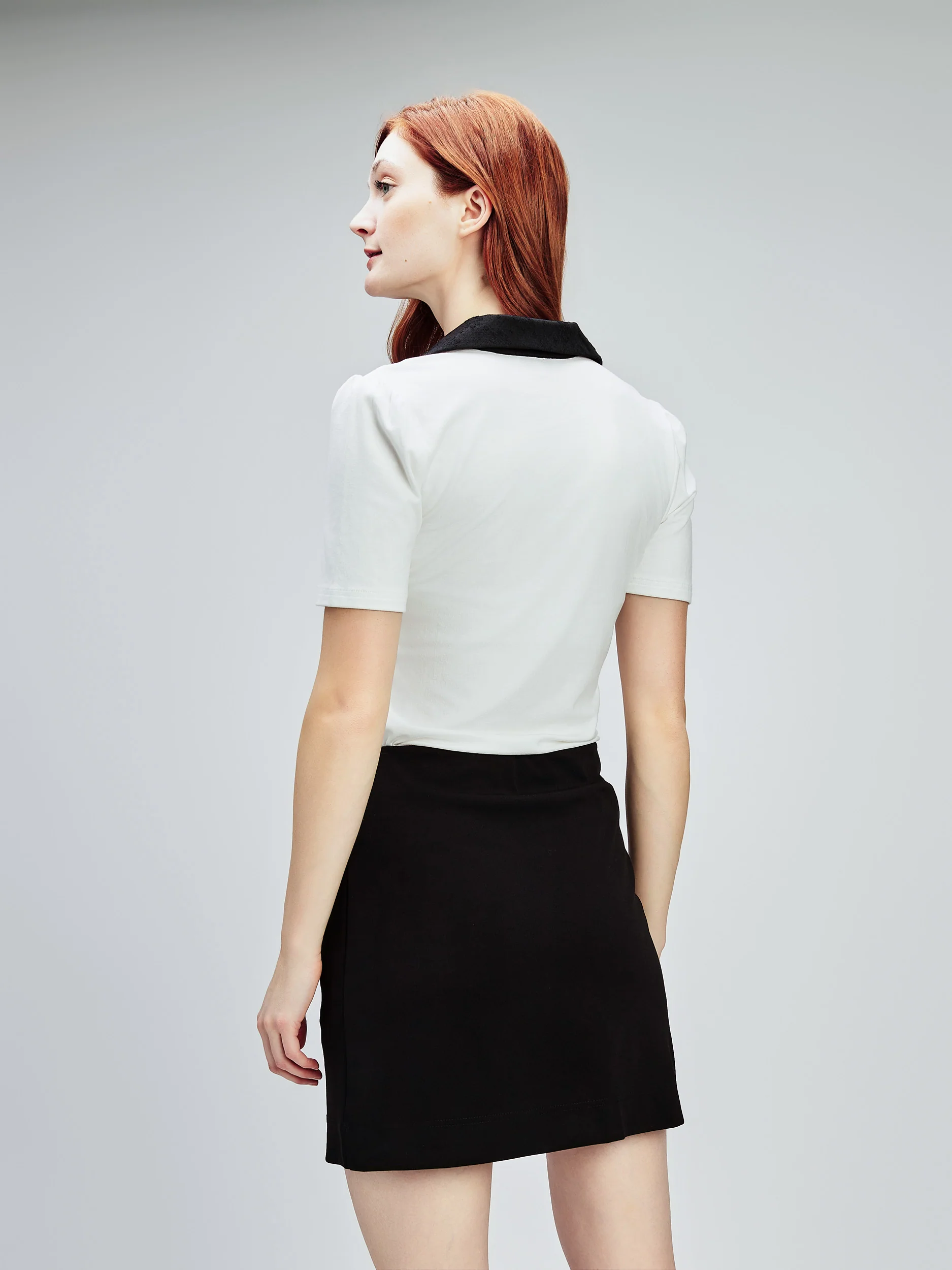 Ce tee-shirt à manches courtes semi-ajusté reprend un style simple et le rehausse d’une encolure contrastante.
