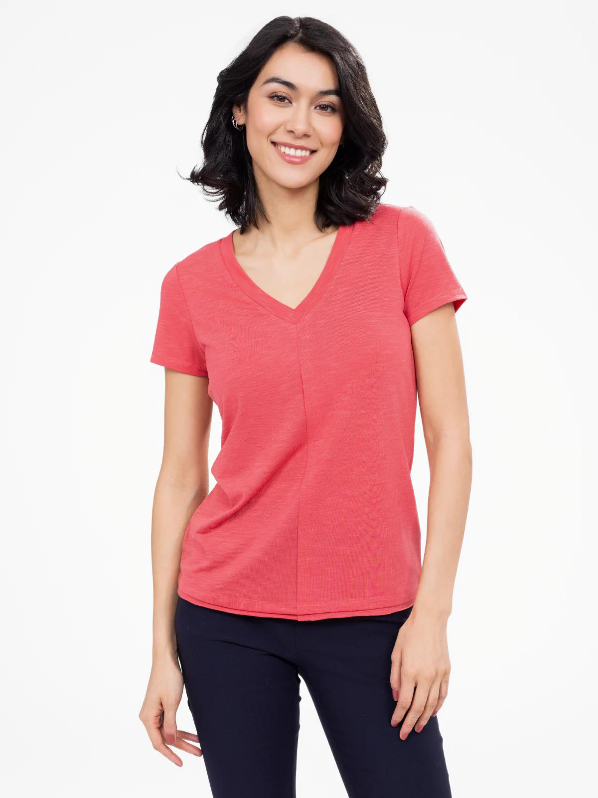 Une coupe simple mais travaillée, soulignée par une couture apparente sur le devant. Son tissu texturé lui apporte un charme discret et une sensation agréable sur la peau.