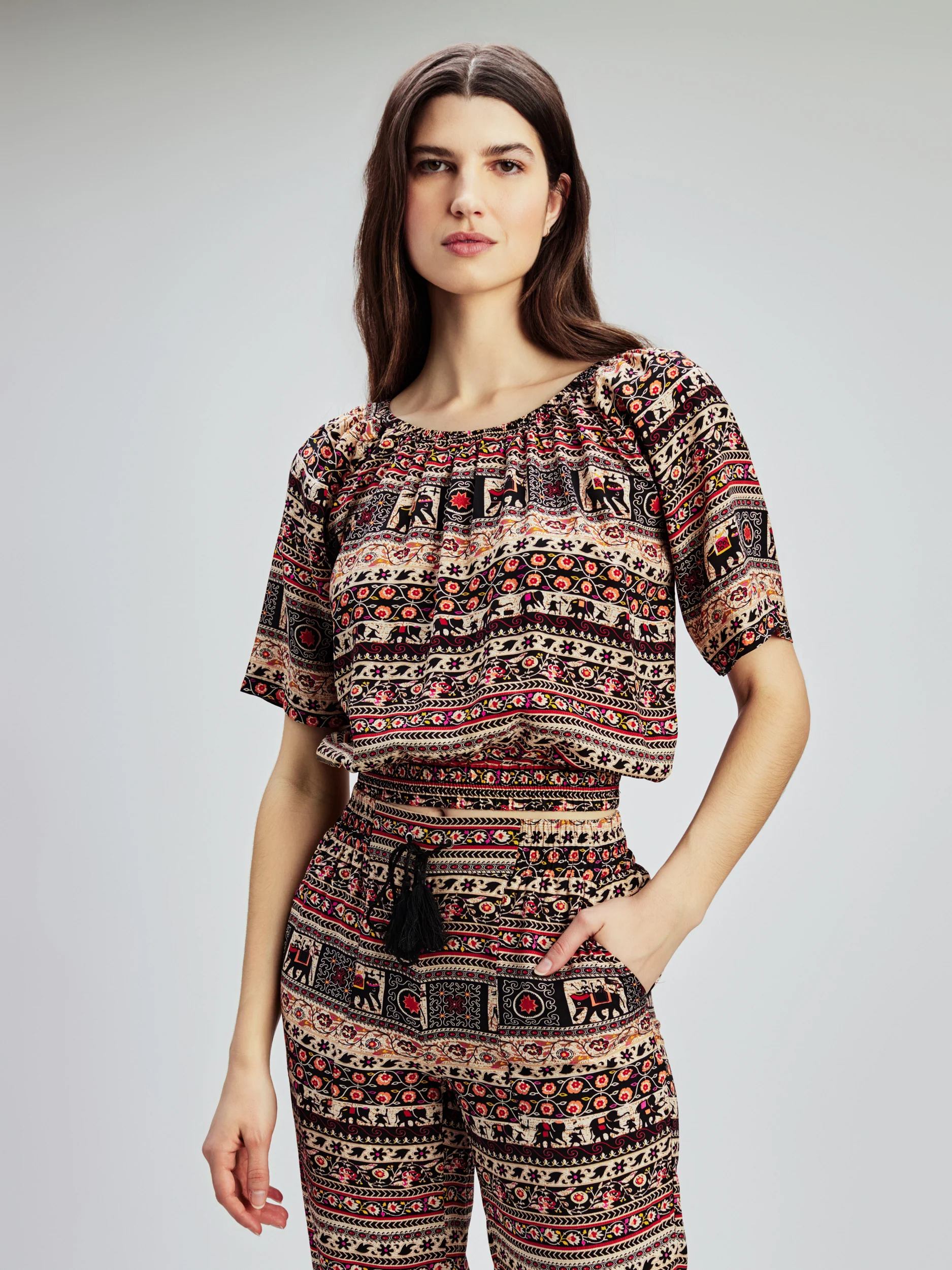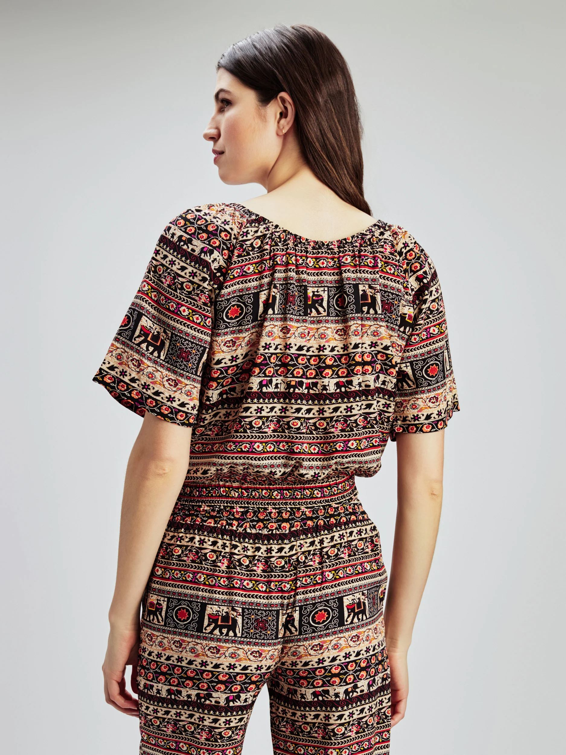 Ajoutez une bonne dose de tendance boho à vos looks avec ce t-shirt à manches courtes.