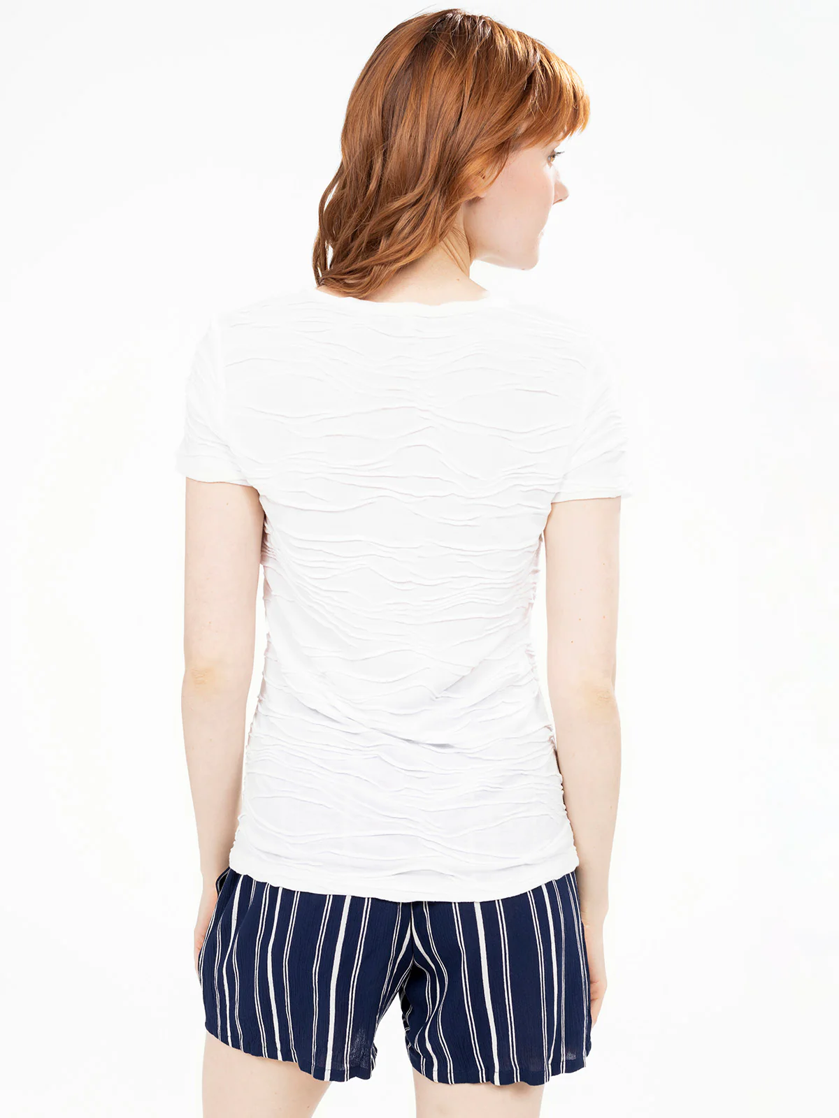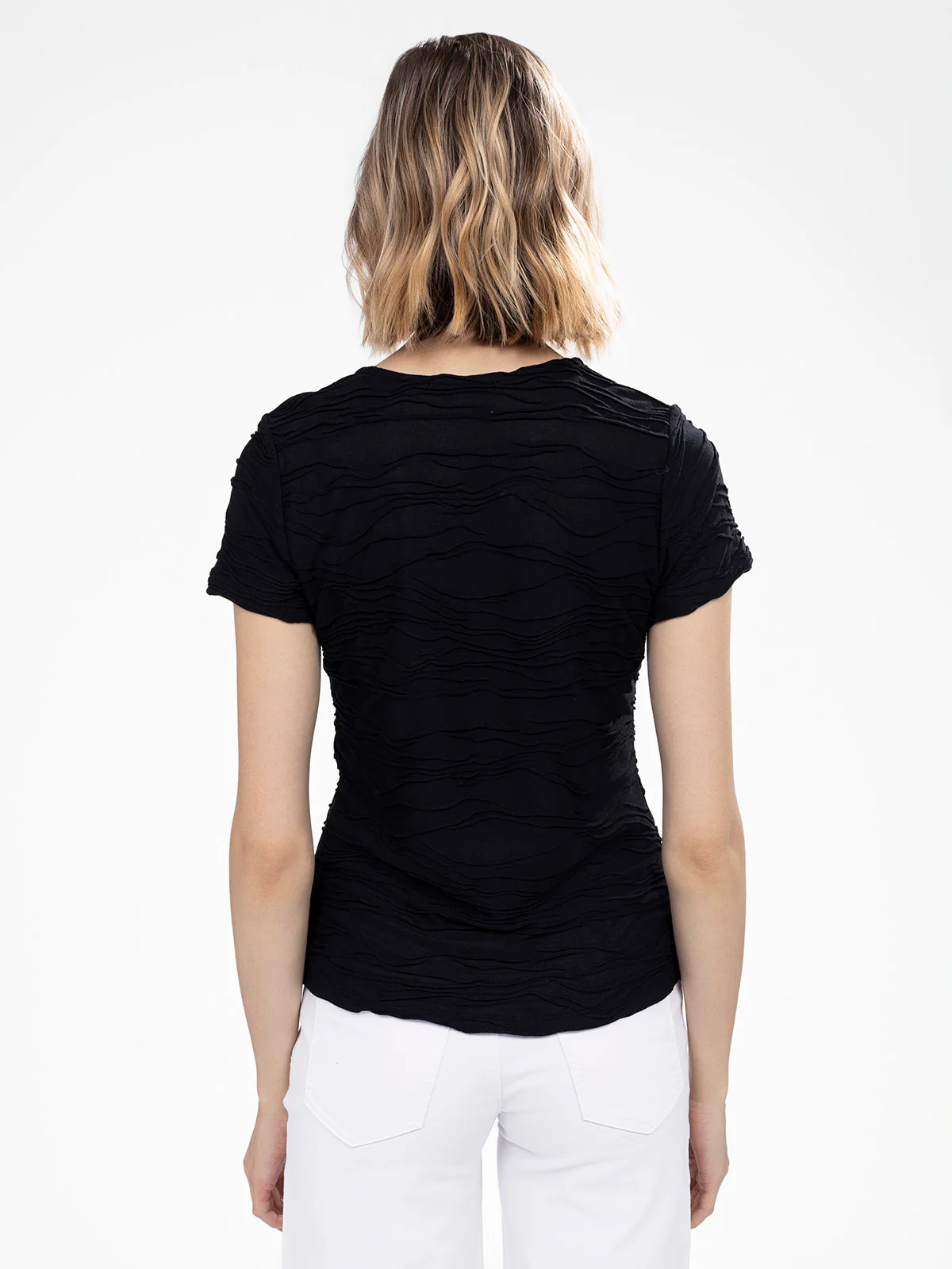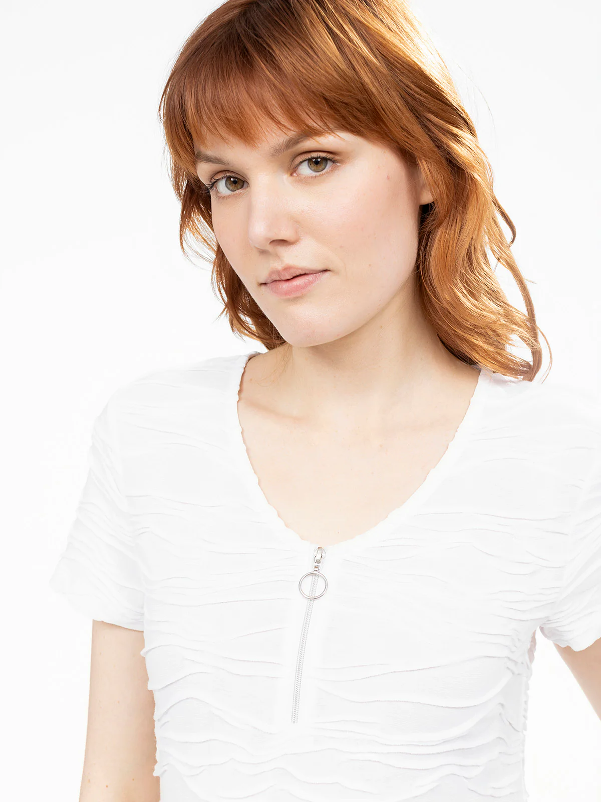 Ce t-shirt texturé apporte du relief à votre tenue avec son effet plissé sur l’ensemble du tissu. Son col en V zippé ajoute une touche originale et permet d’ajuster l’ouverture selon vos envies.